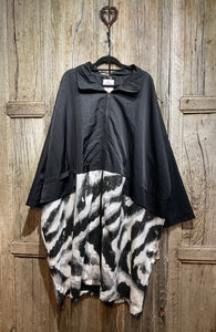 Preloved NESLAY Black Oversized Coat with Pattern Detail Hem