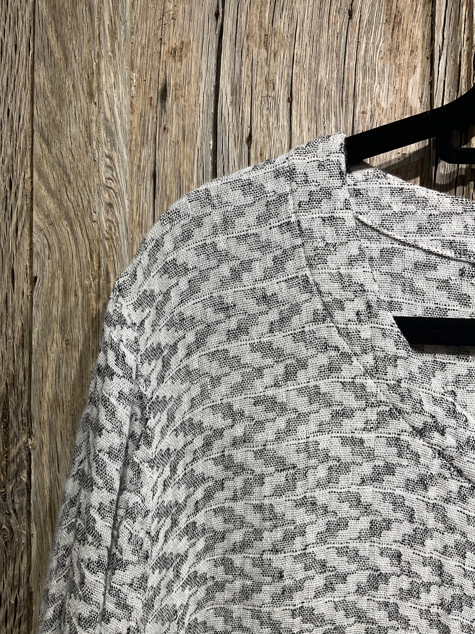 Gorgeous linen blend grey and white silver button down light coat. Perfect for the spring!