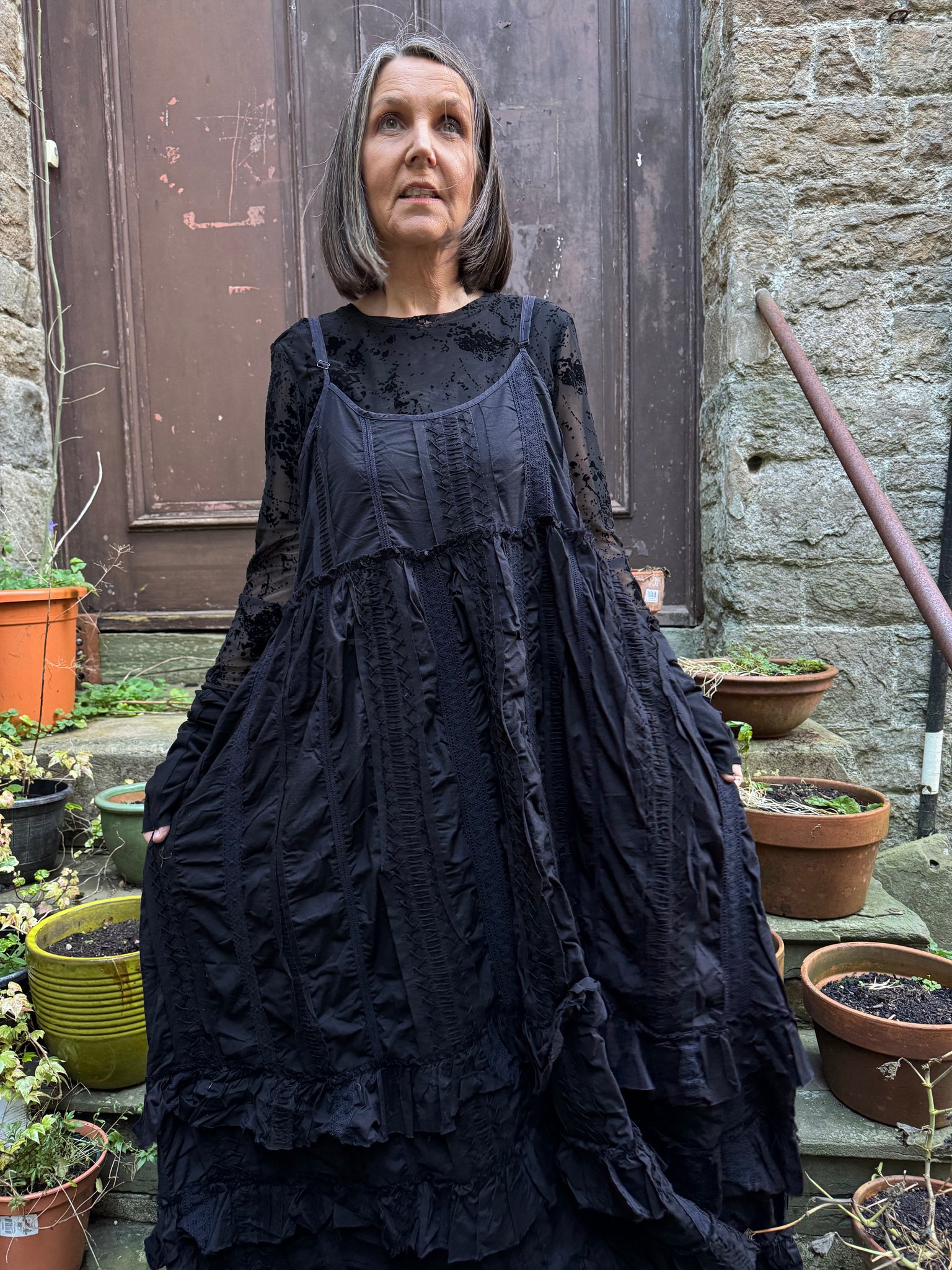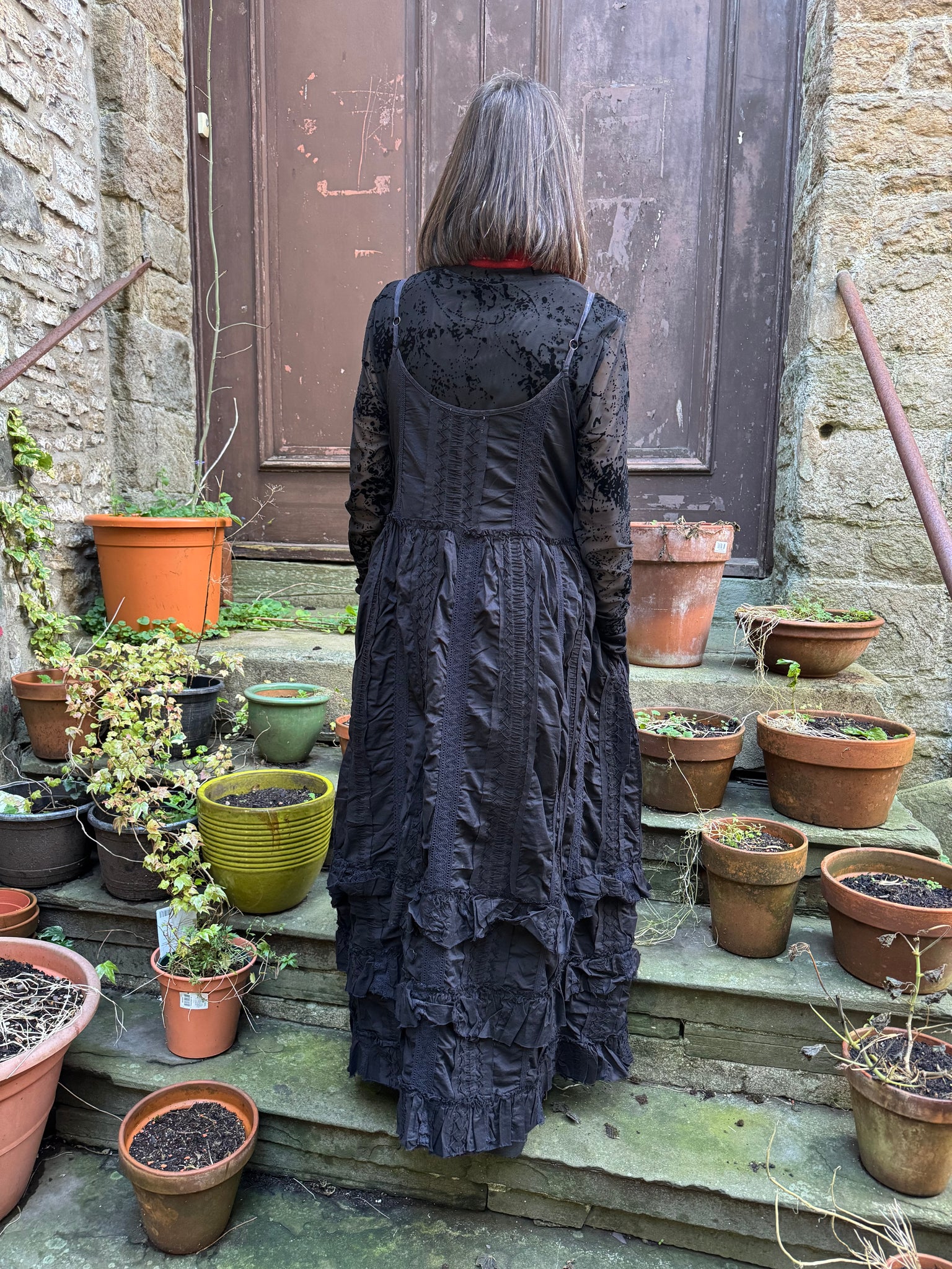 JLS Antique Black Lace & Embroidery Cotton Sun Dress 1102