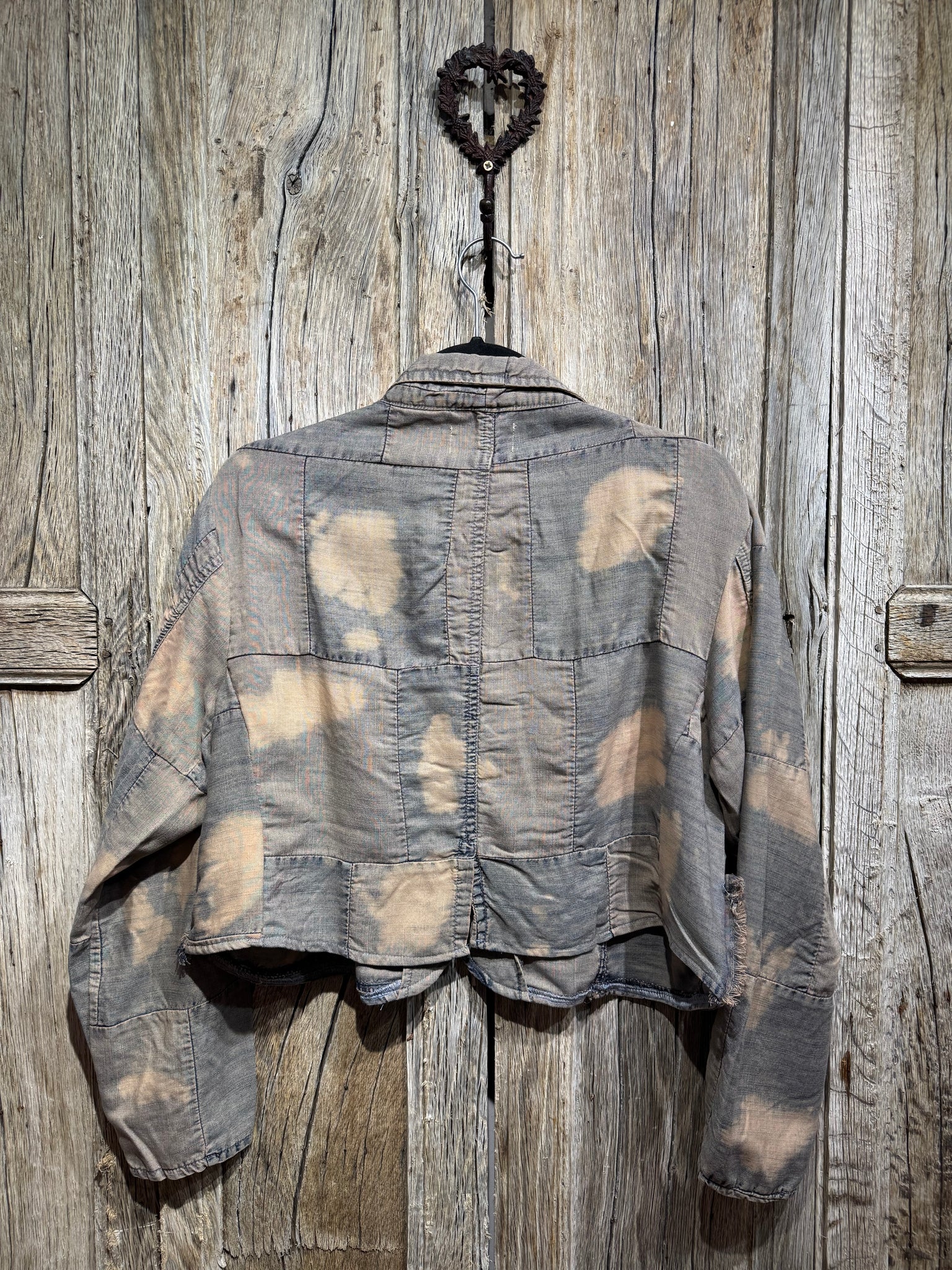 JLS Blue Grey Dip Dyed Cropped Cotton Jacket
