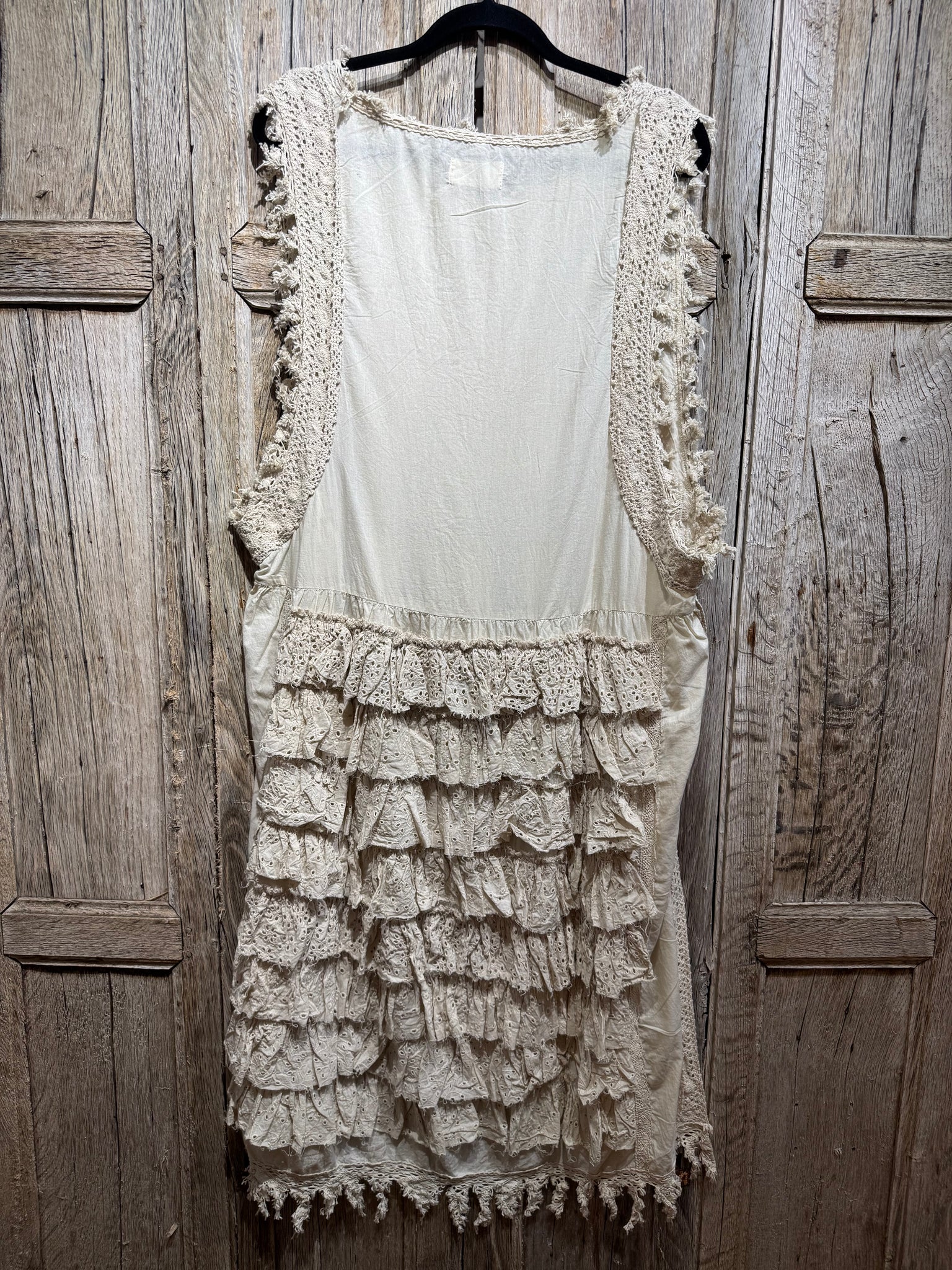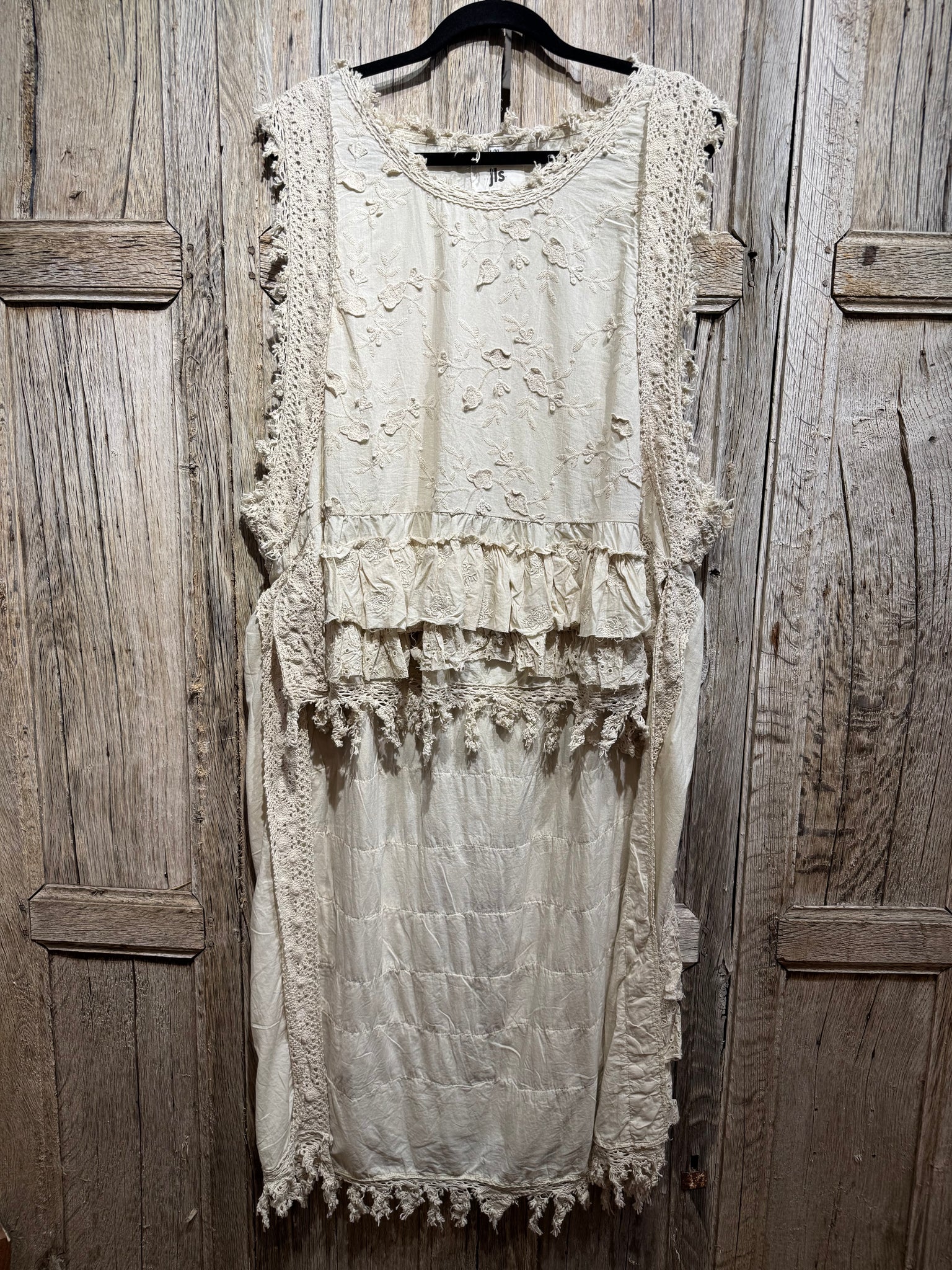 JLS Cream Embroidery Appliqué & Lace Layering Tunic Dress 1107