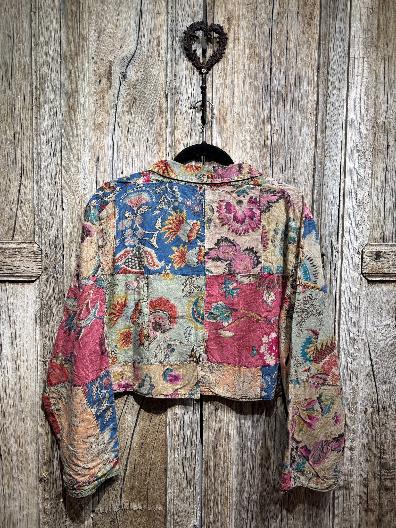 Patchwork Floral Cropped Jacket with Collar & Button Fastening with Floral Lining