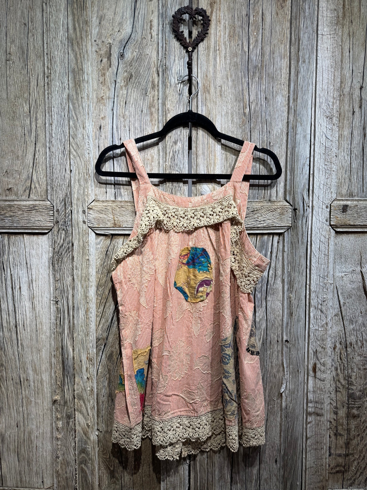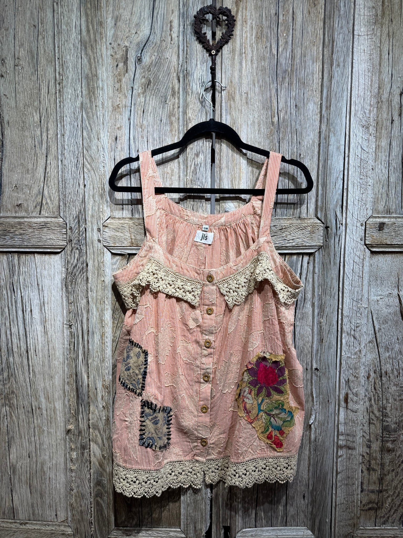 Soft Stripe Cotton Vest with Appliqué & Patchwork Detail.