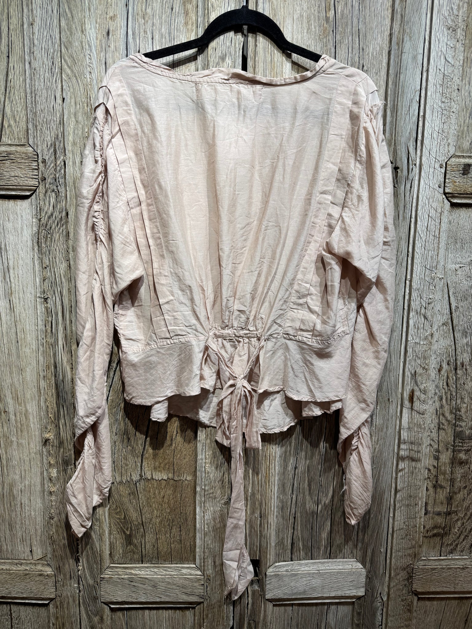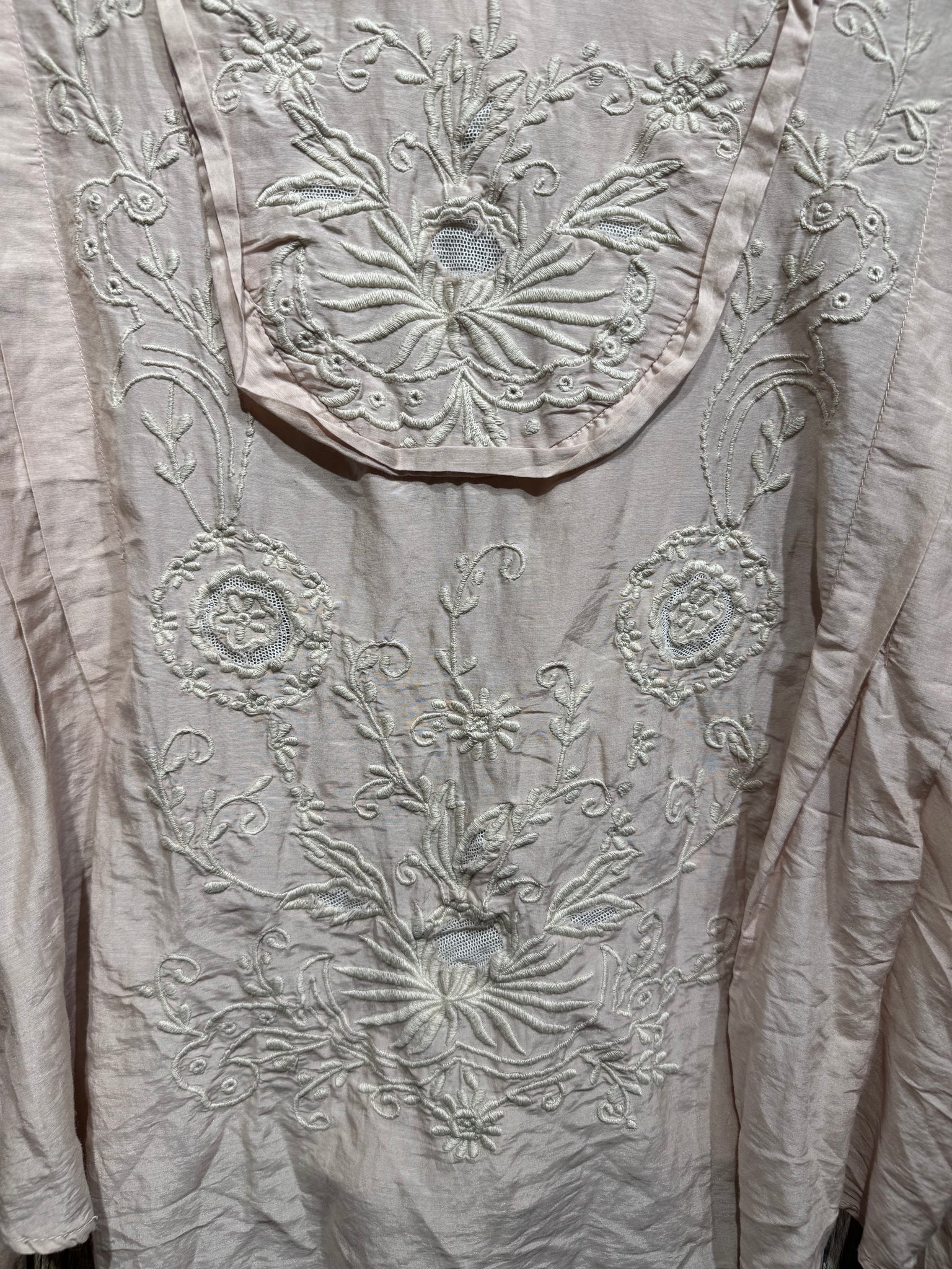 - Embroidery, Ruffled Sleeve and Tie At Back
