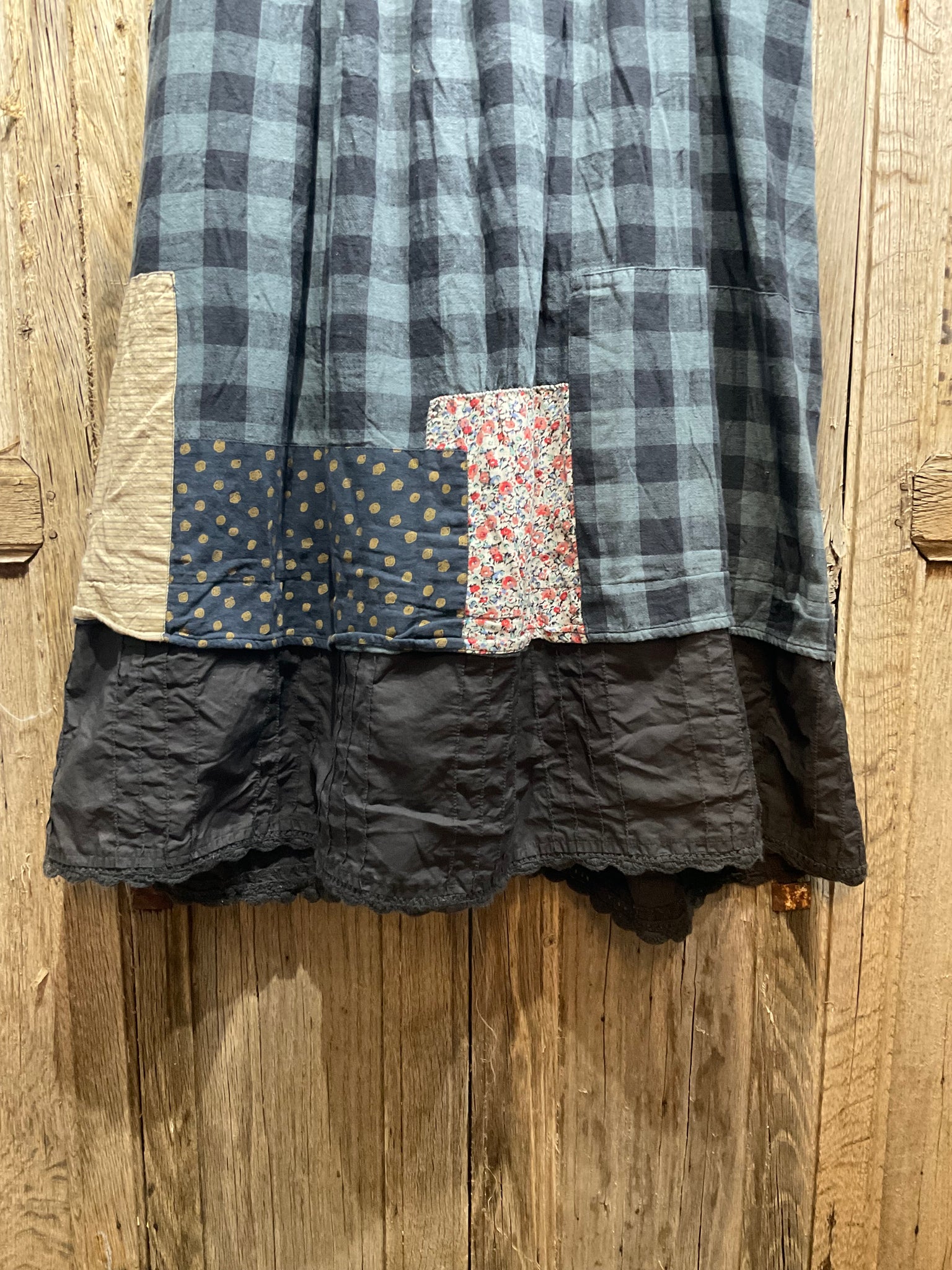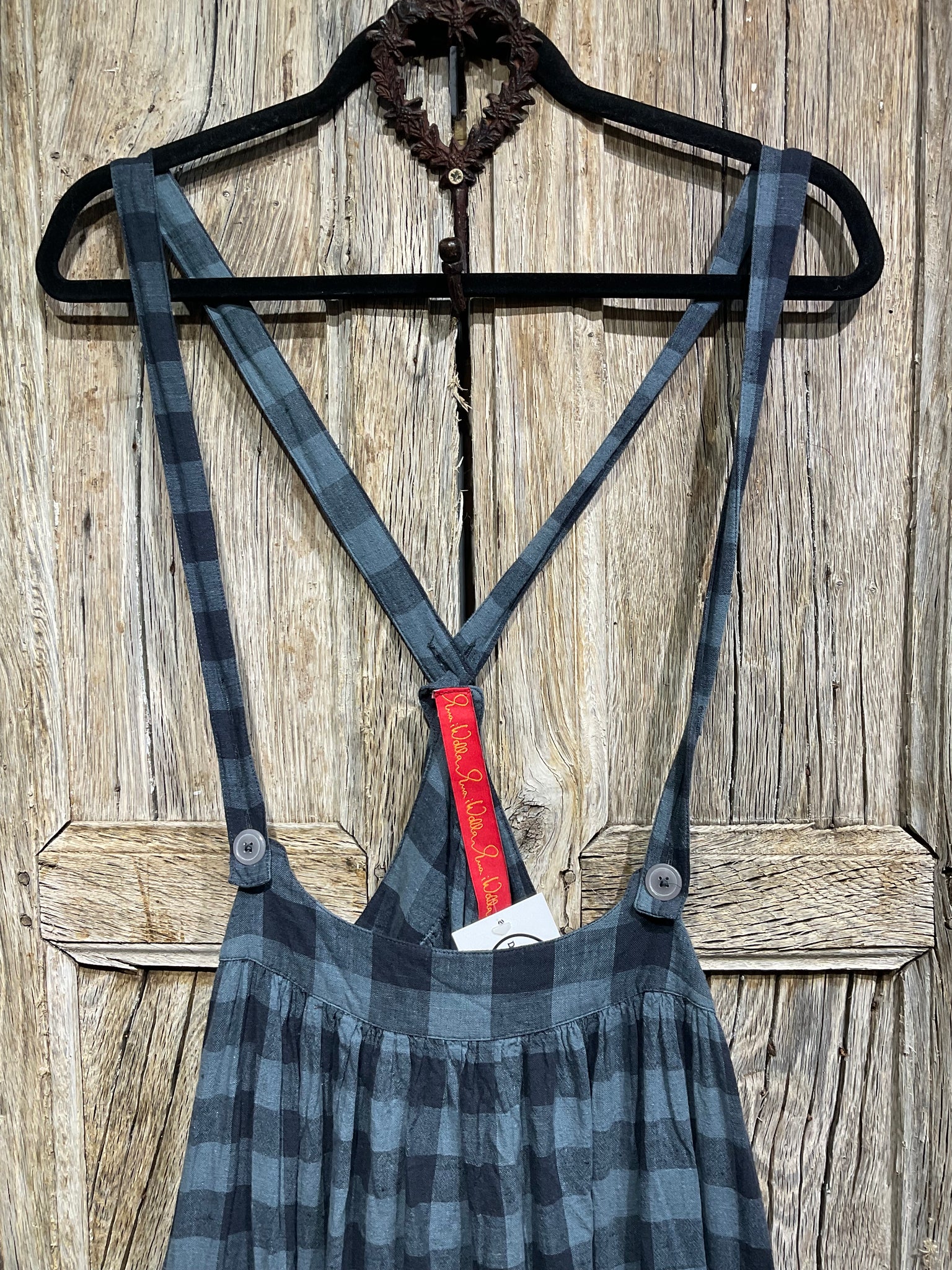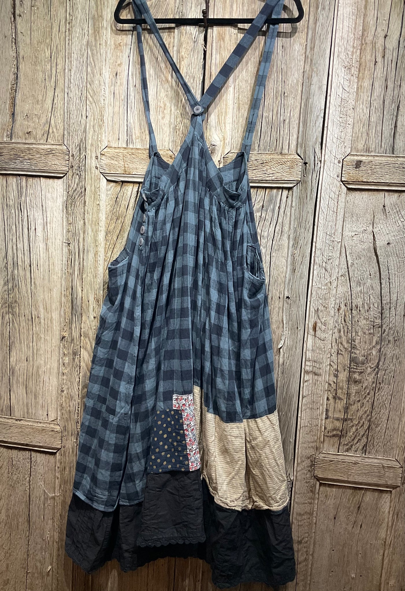 Preloved Blue Check Pinafore Dress with Patches 22909