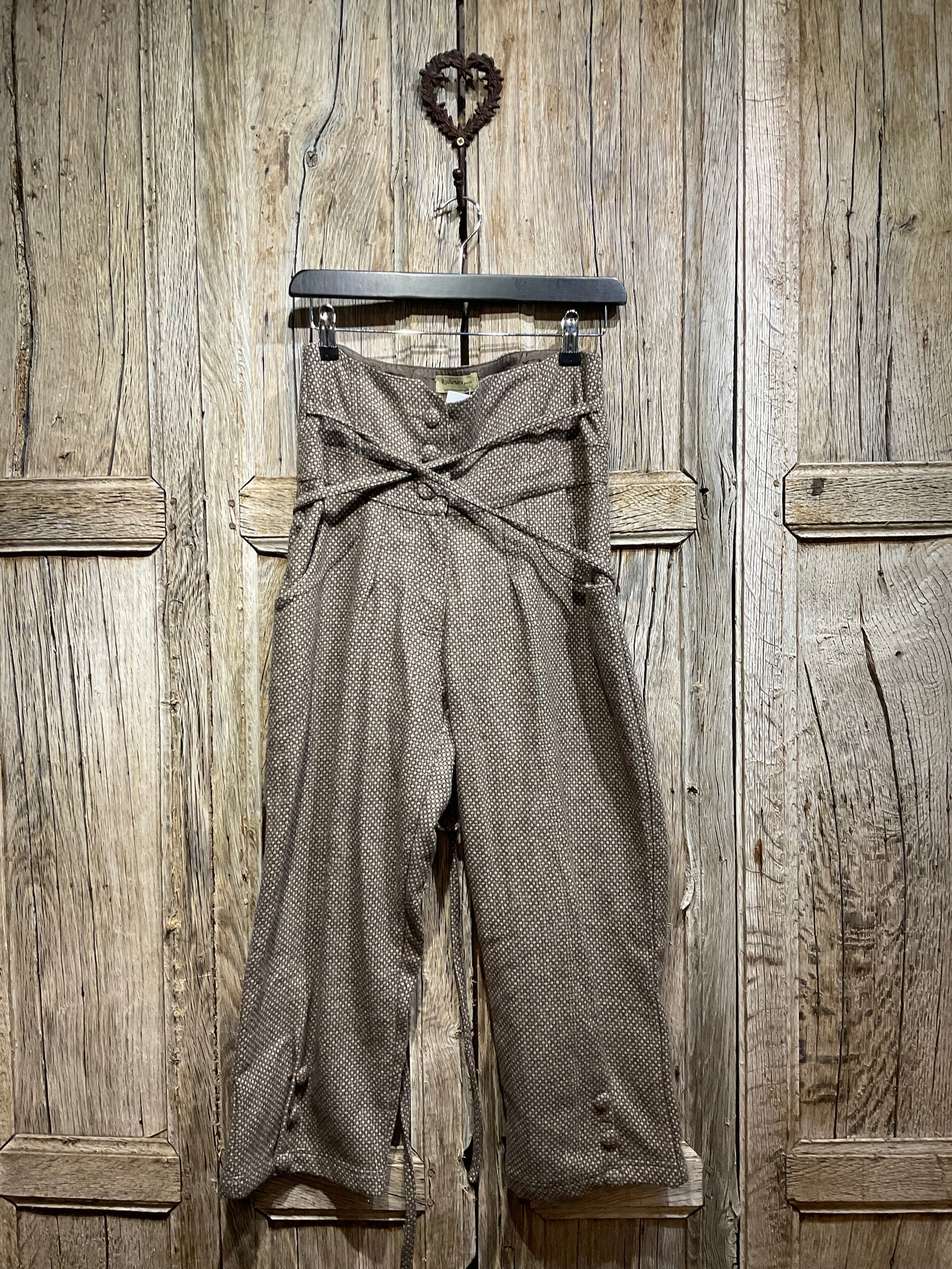 Preloved Brown & Cream Spot Detail Wool Trousers