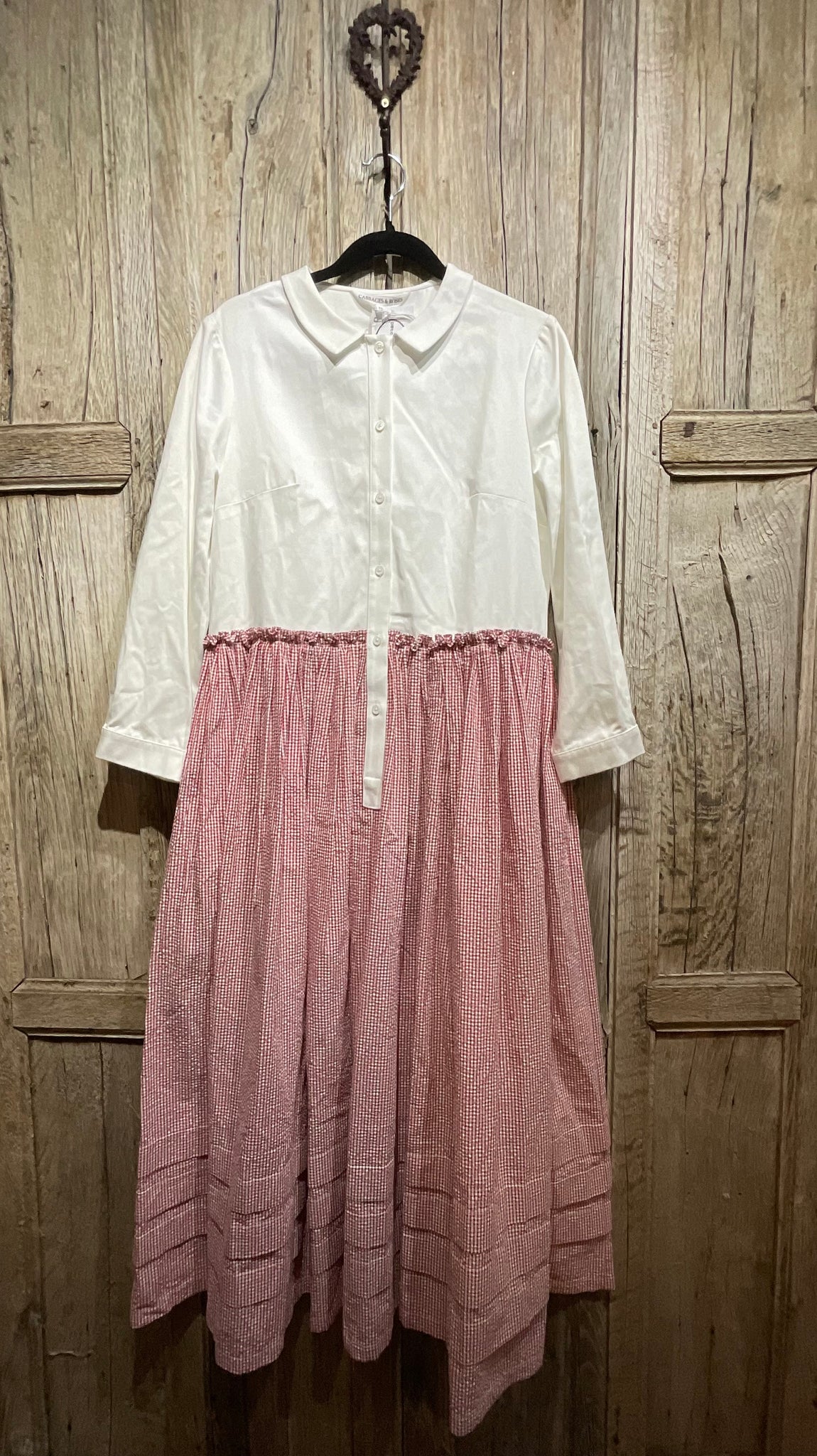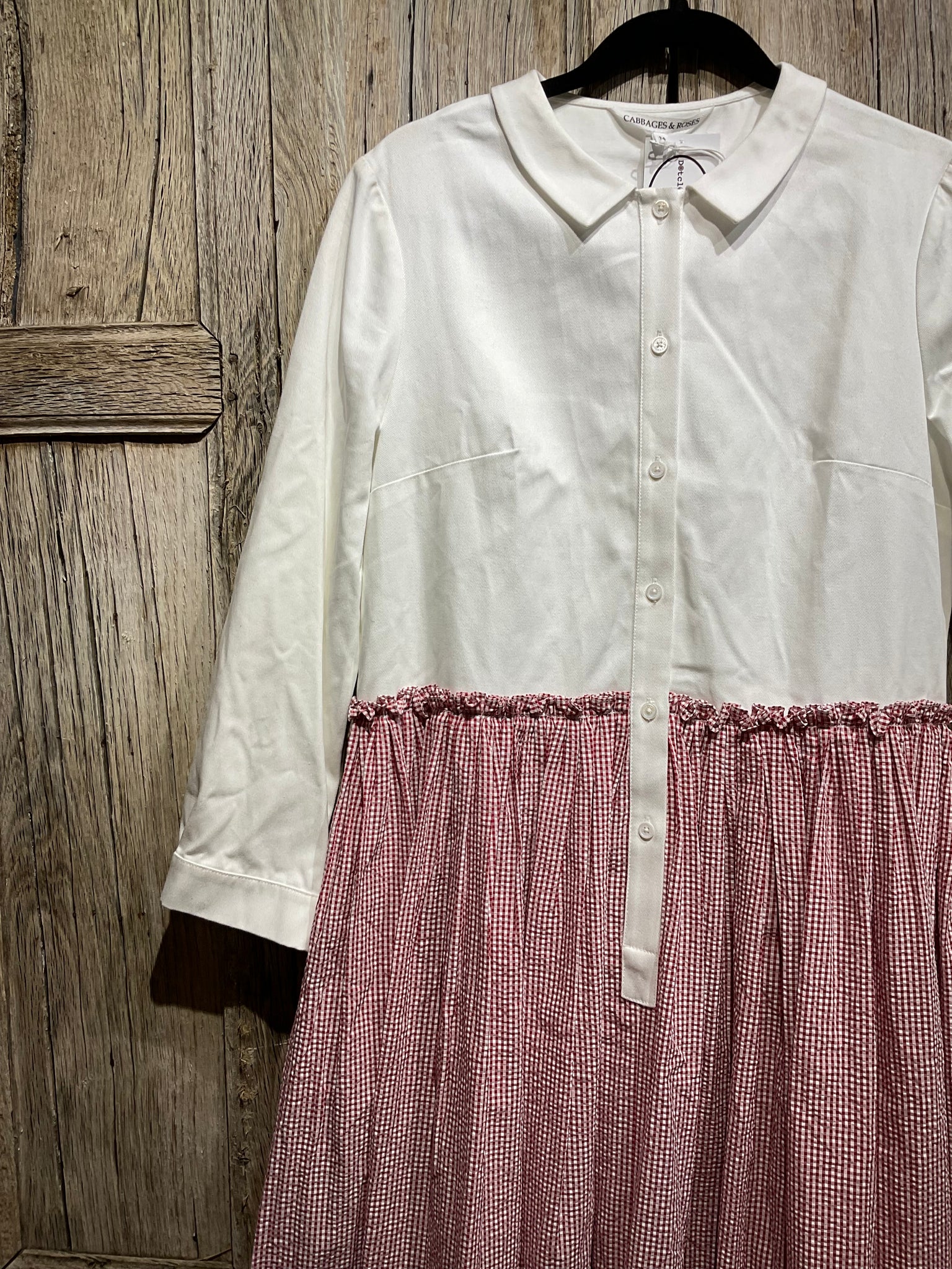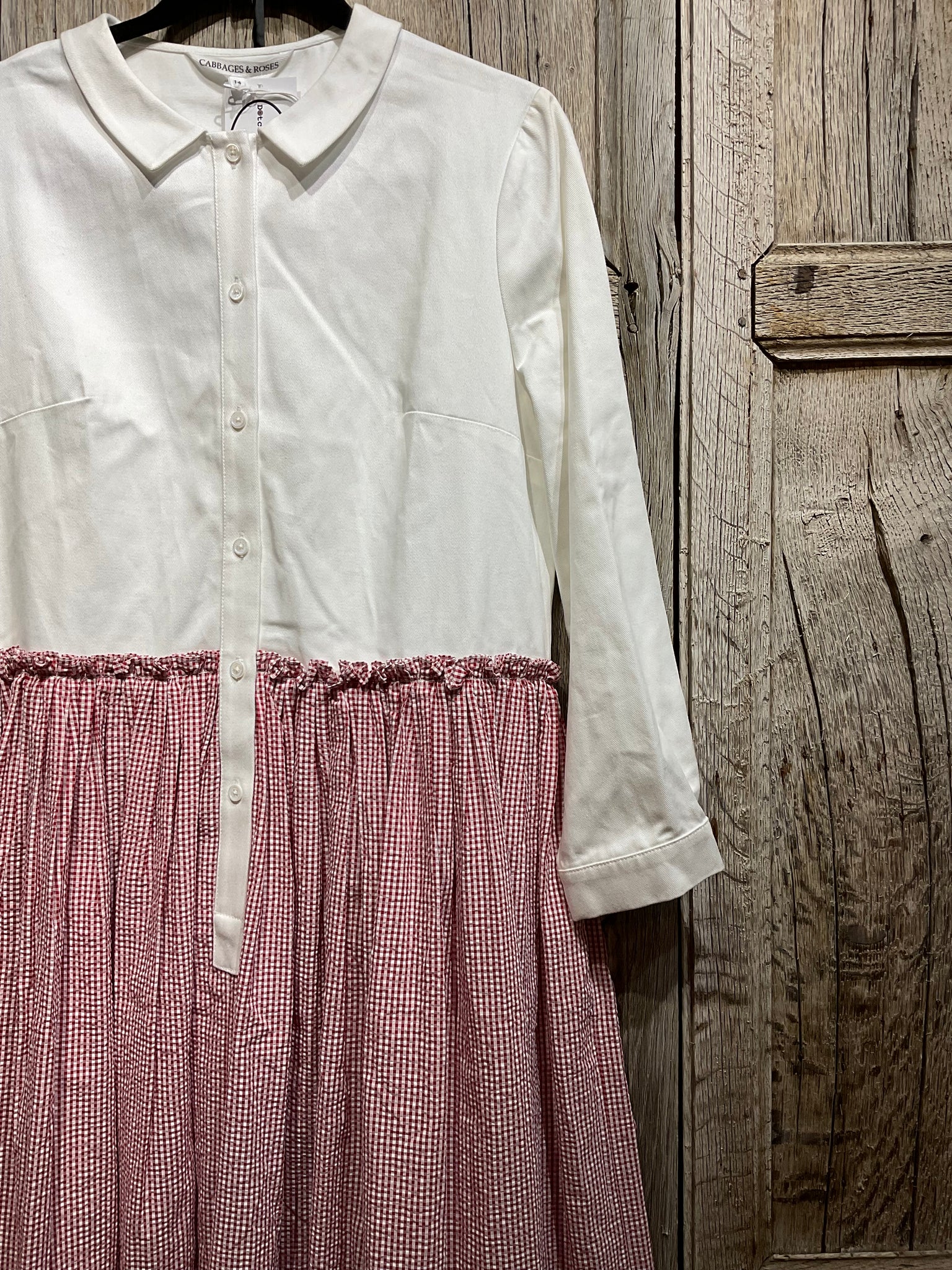 Preloved CABBAGES & ROSES White and Red Check Detail Dress