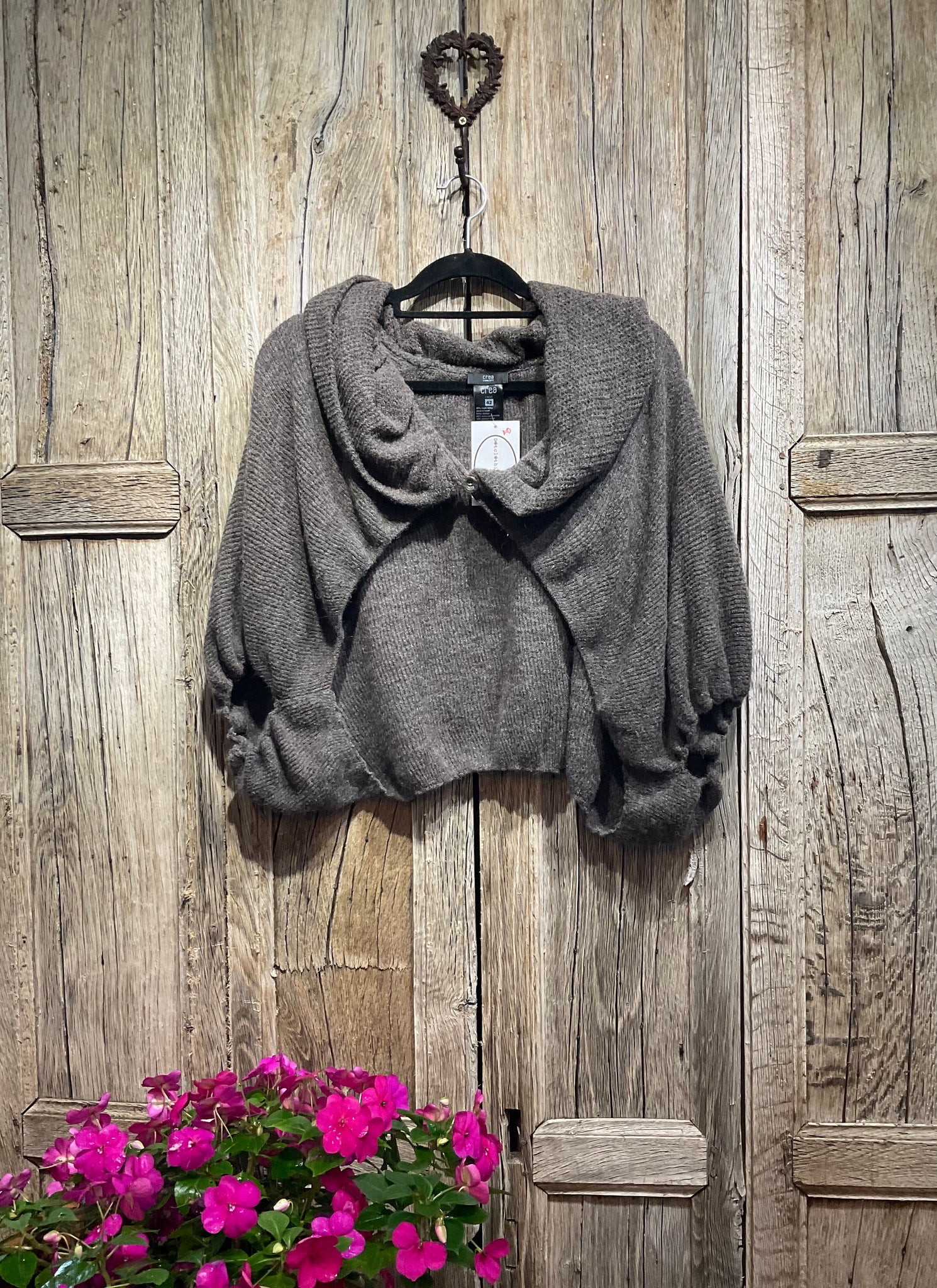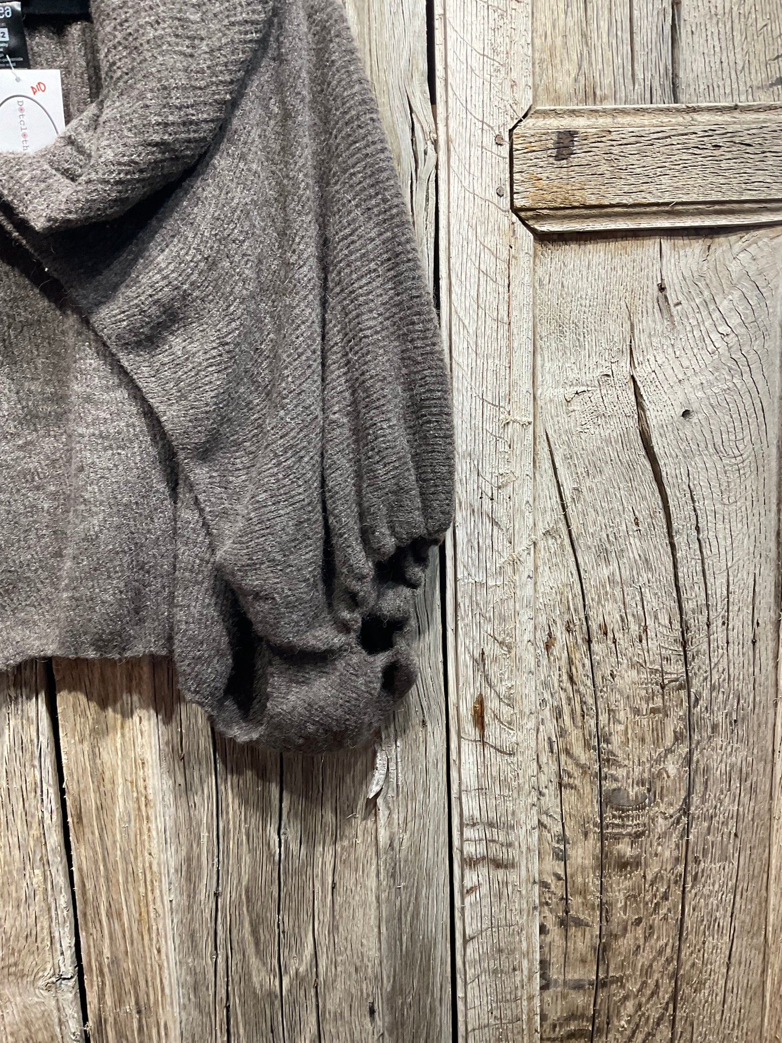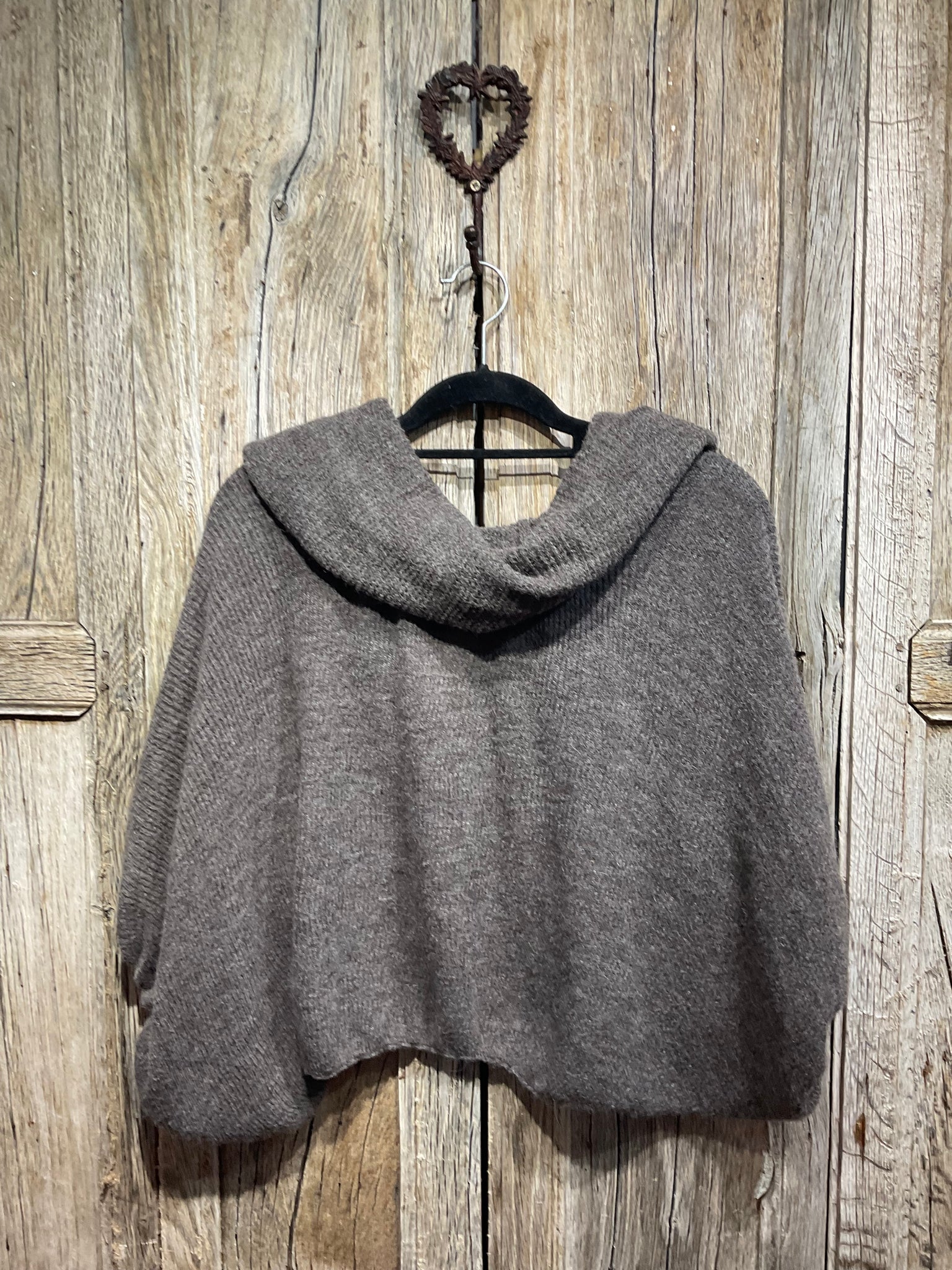 Soft and scrummy - there’s a button at the top, by the neck, and the length is more at the back. Proper cwtch!