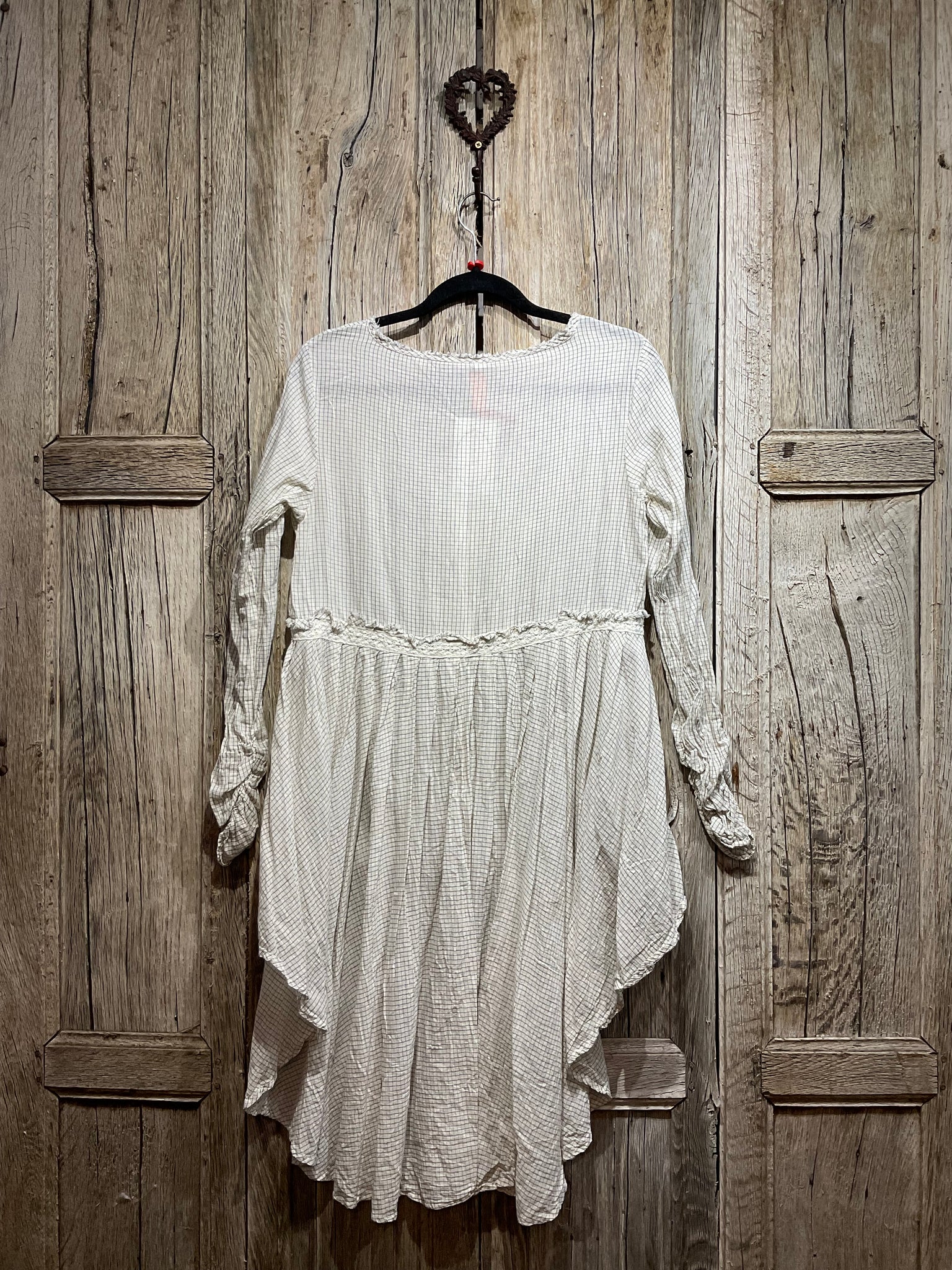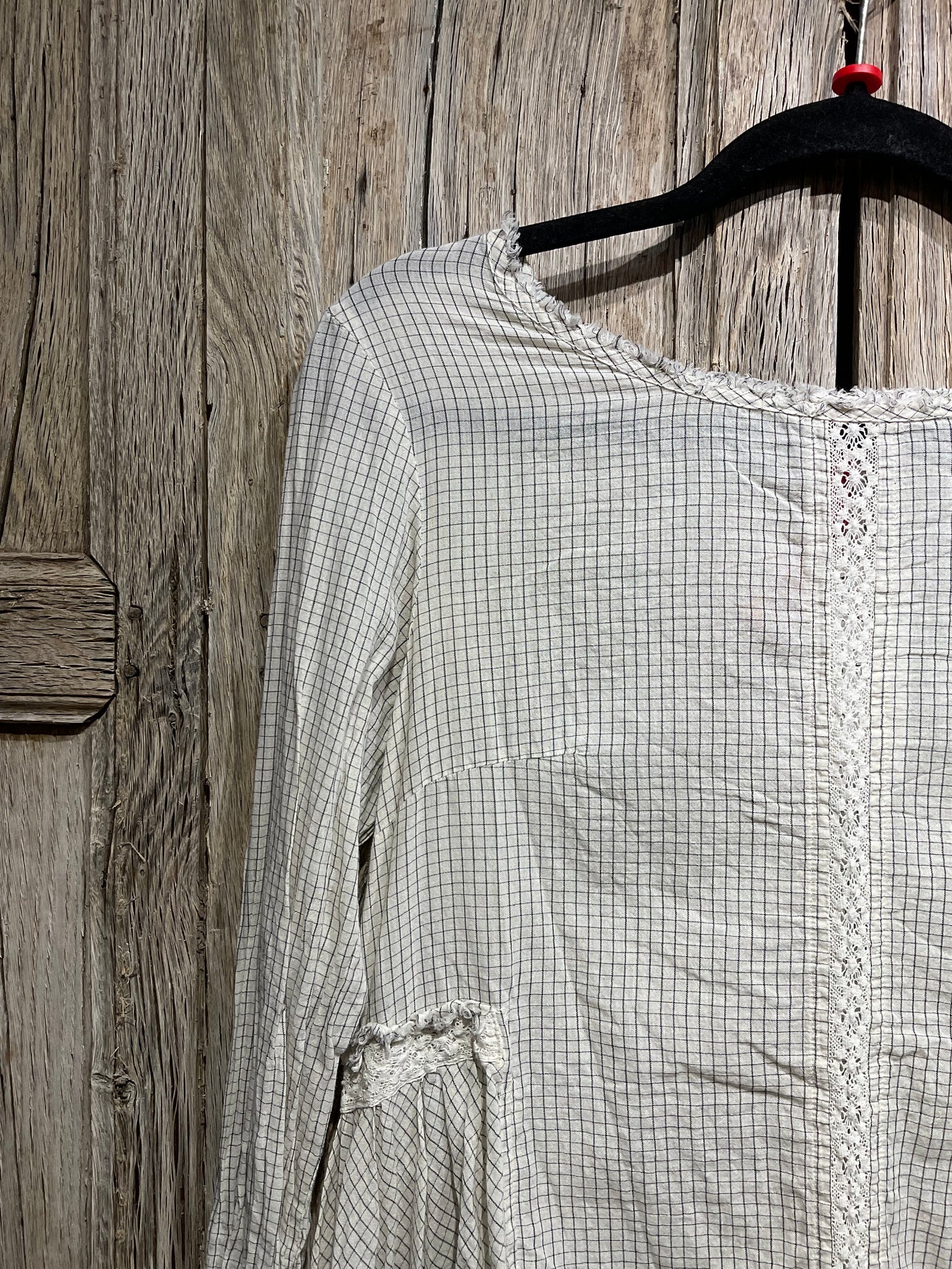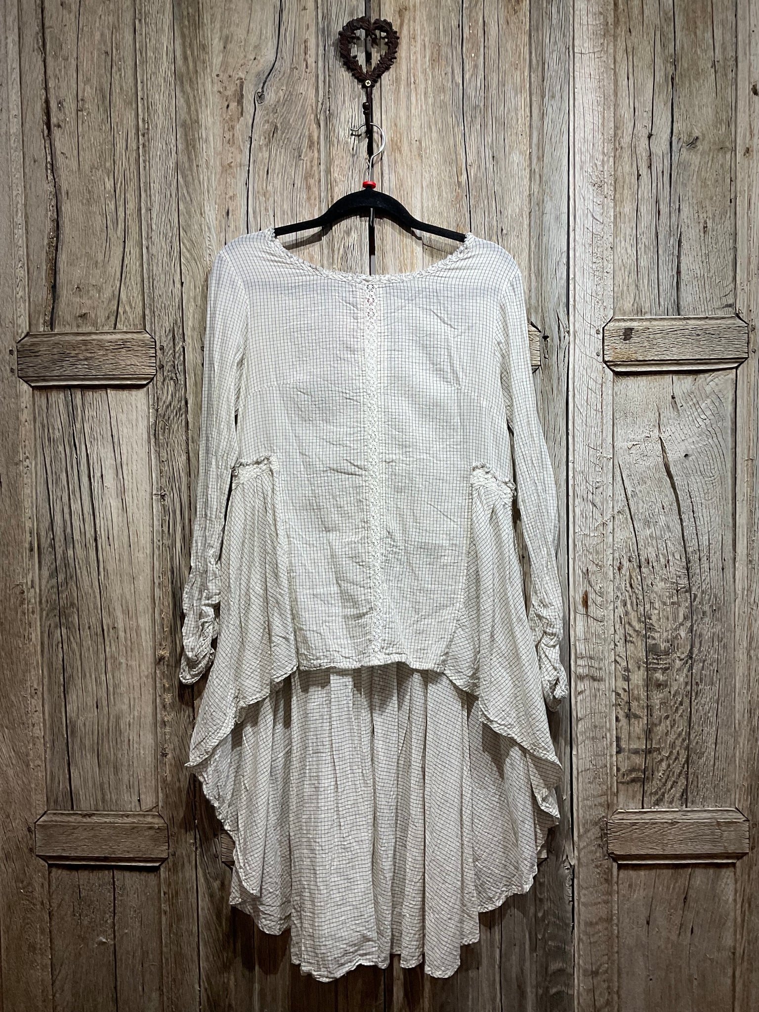 Lovely soft cotton check top with lace details, longer at the back. Perfect layering piece for spring/summer.