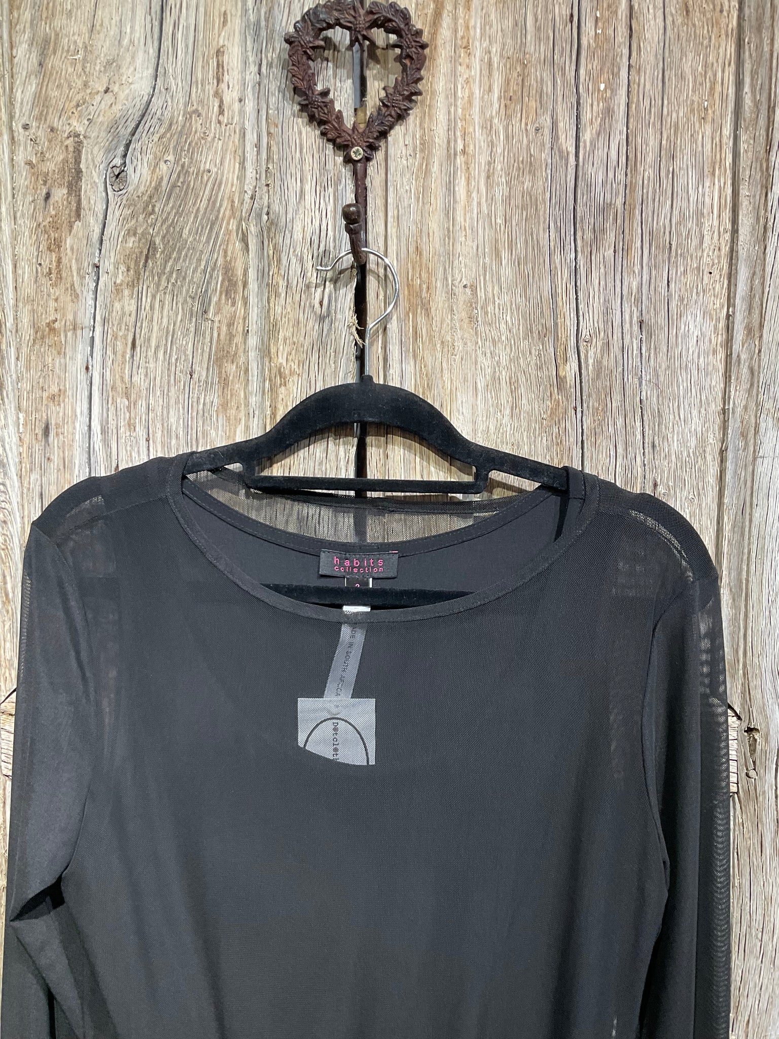 Fine mesh dress over a simple, plain black underdress