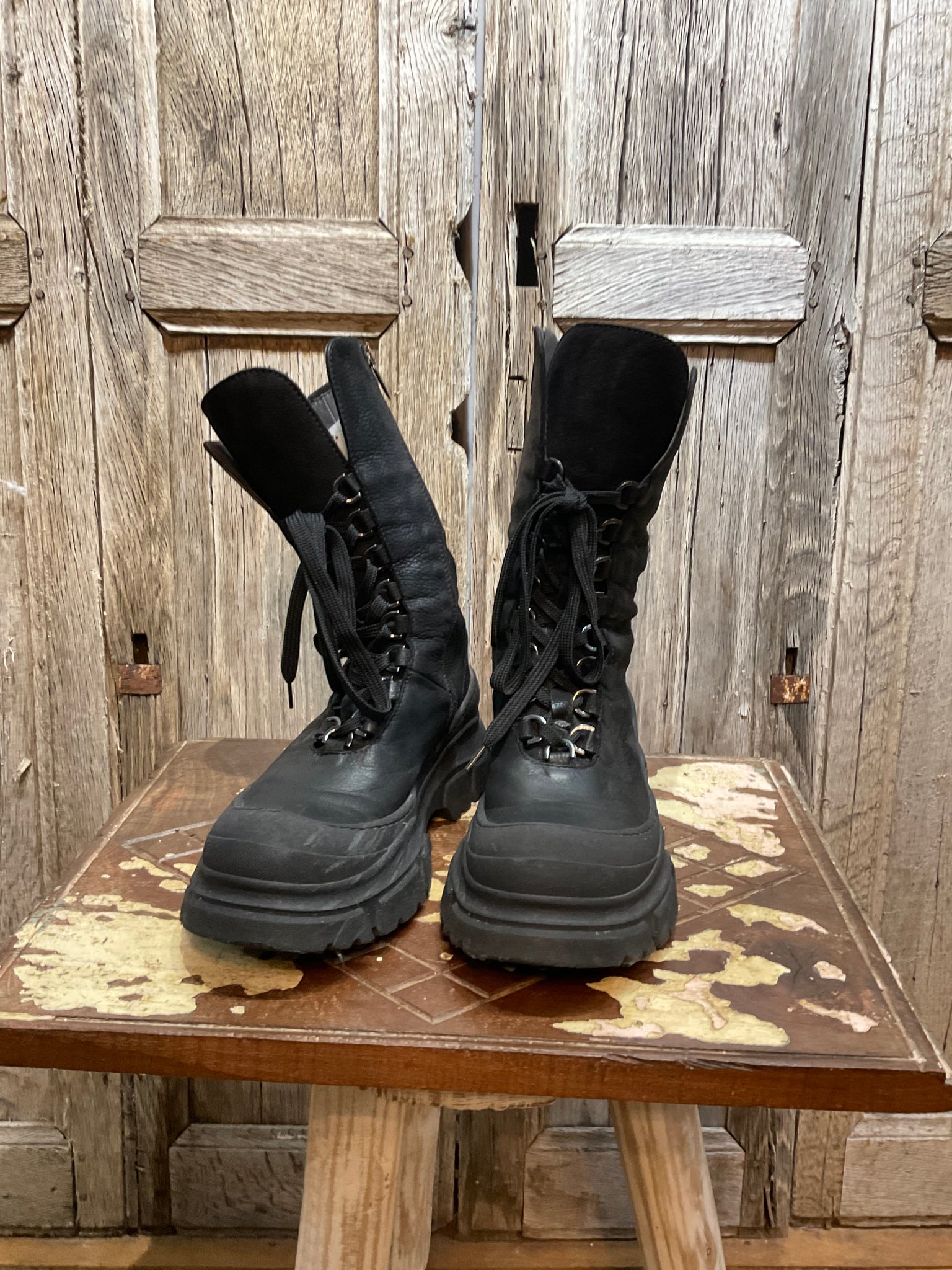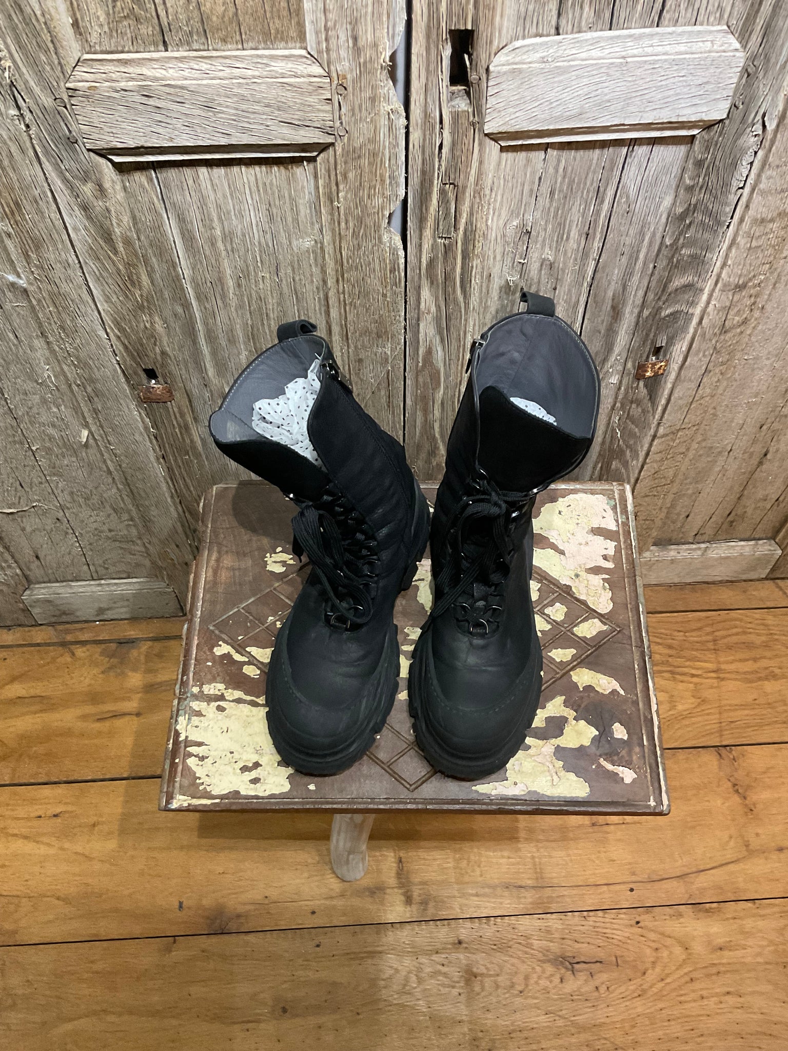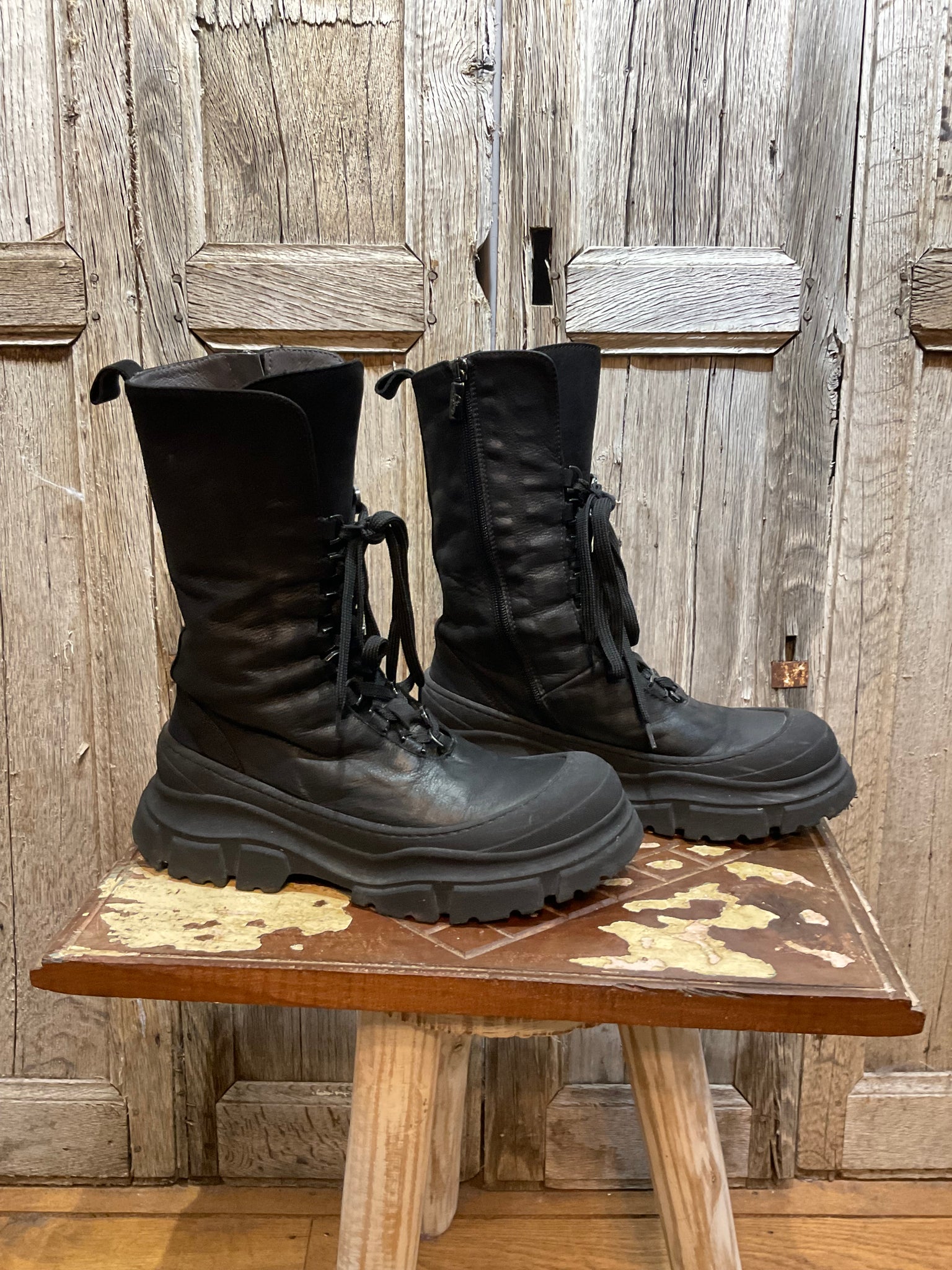 Beautiful black leather Lofina boots with lace up and zips at the side. Gorgeously soft!