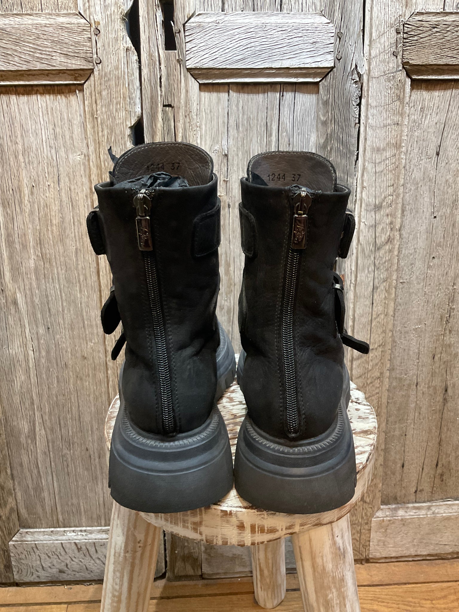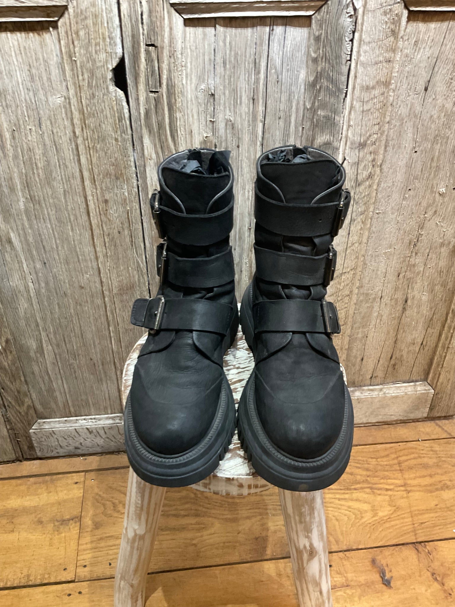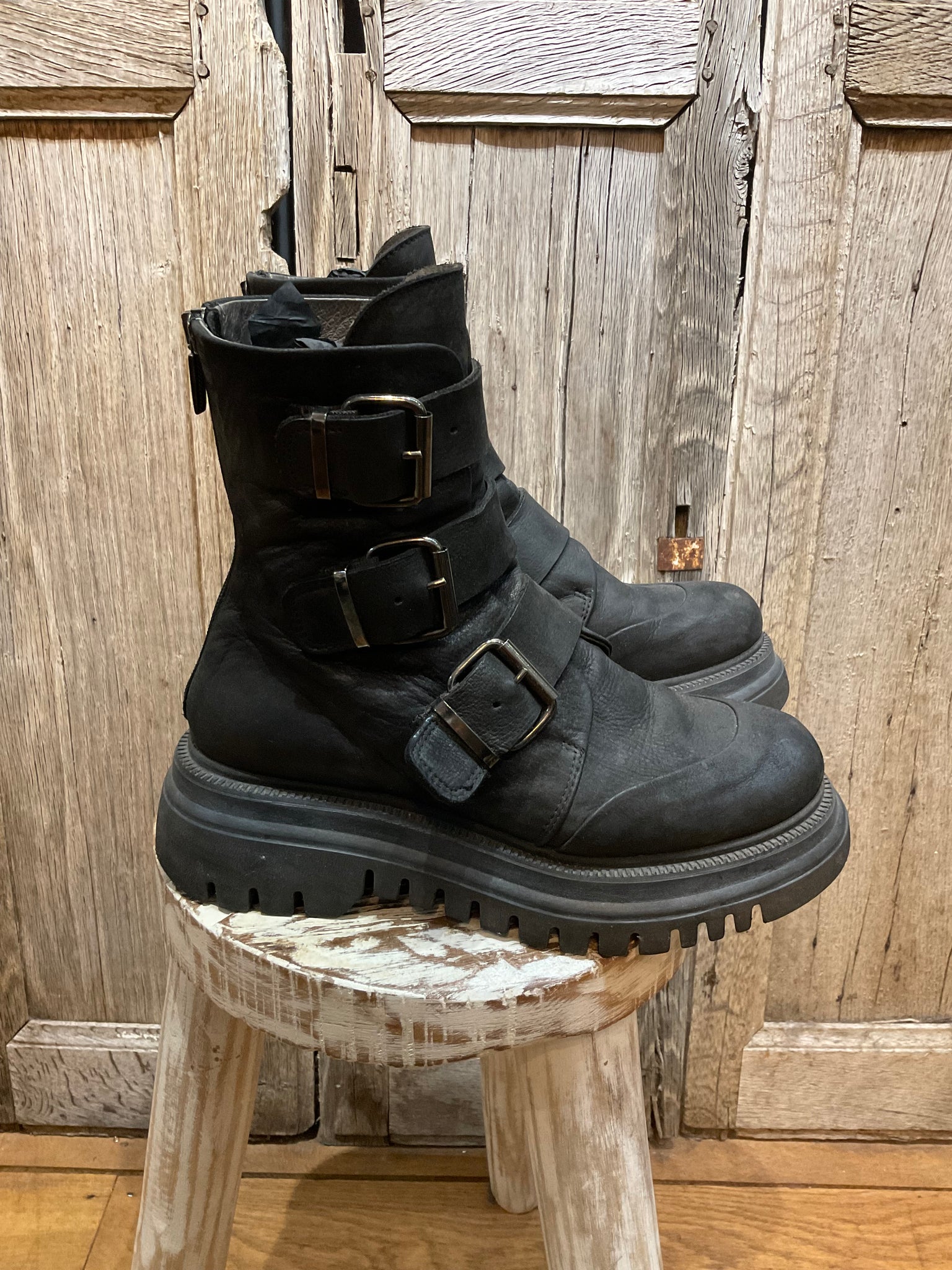 Beautiful black leather Lofina boots with three buckles and zips at the back. Gorgeously soft!