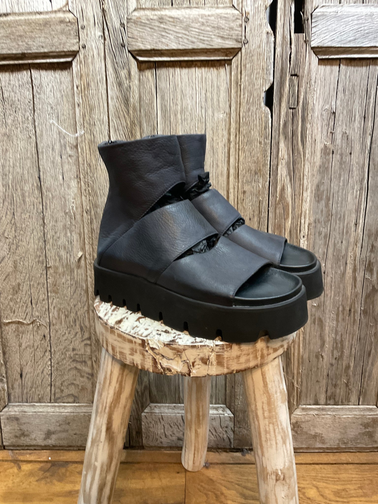 Lovely black leather sandal/boots with delightfully chunky soles.  Beautifully comfortable!