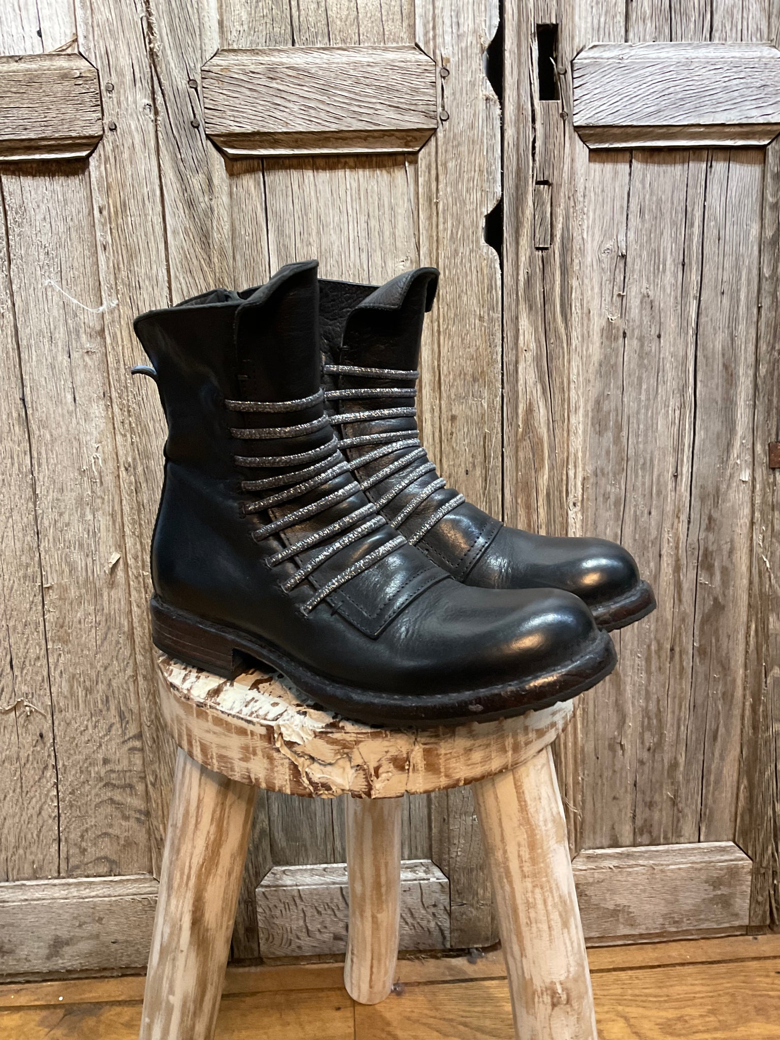Lovely black leather boots with zips and pretty silver lace detail.  Beautifully soft and comfortable
