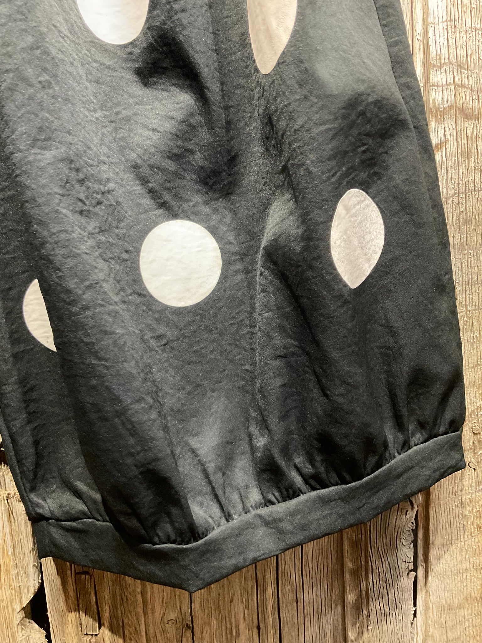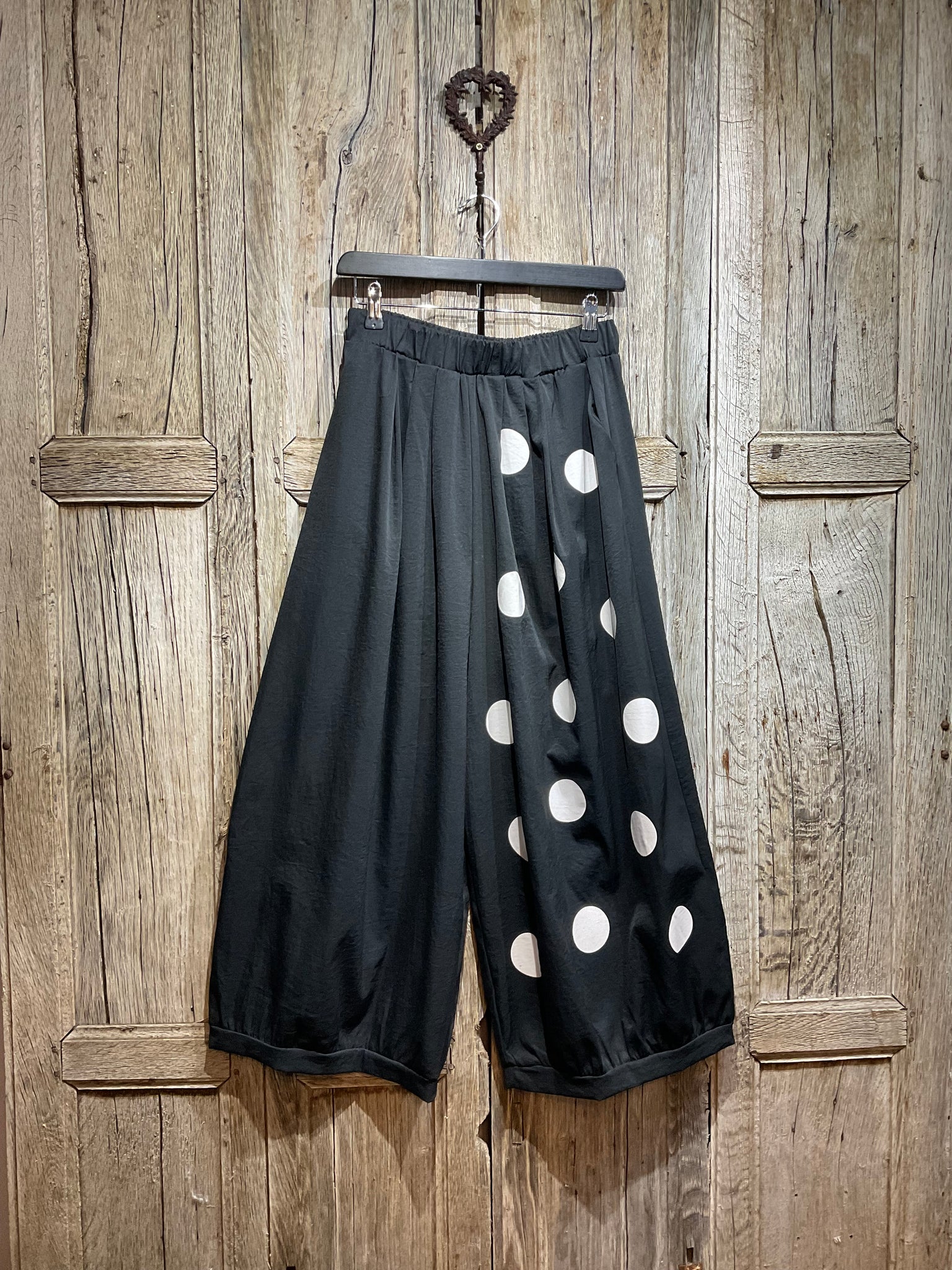 Gorgeous black trousers with cream spot detail elasticated waist and two pockets
