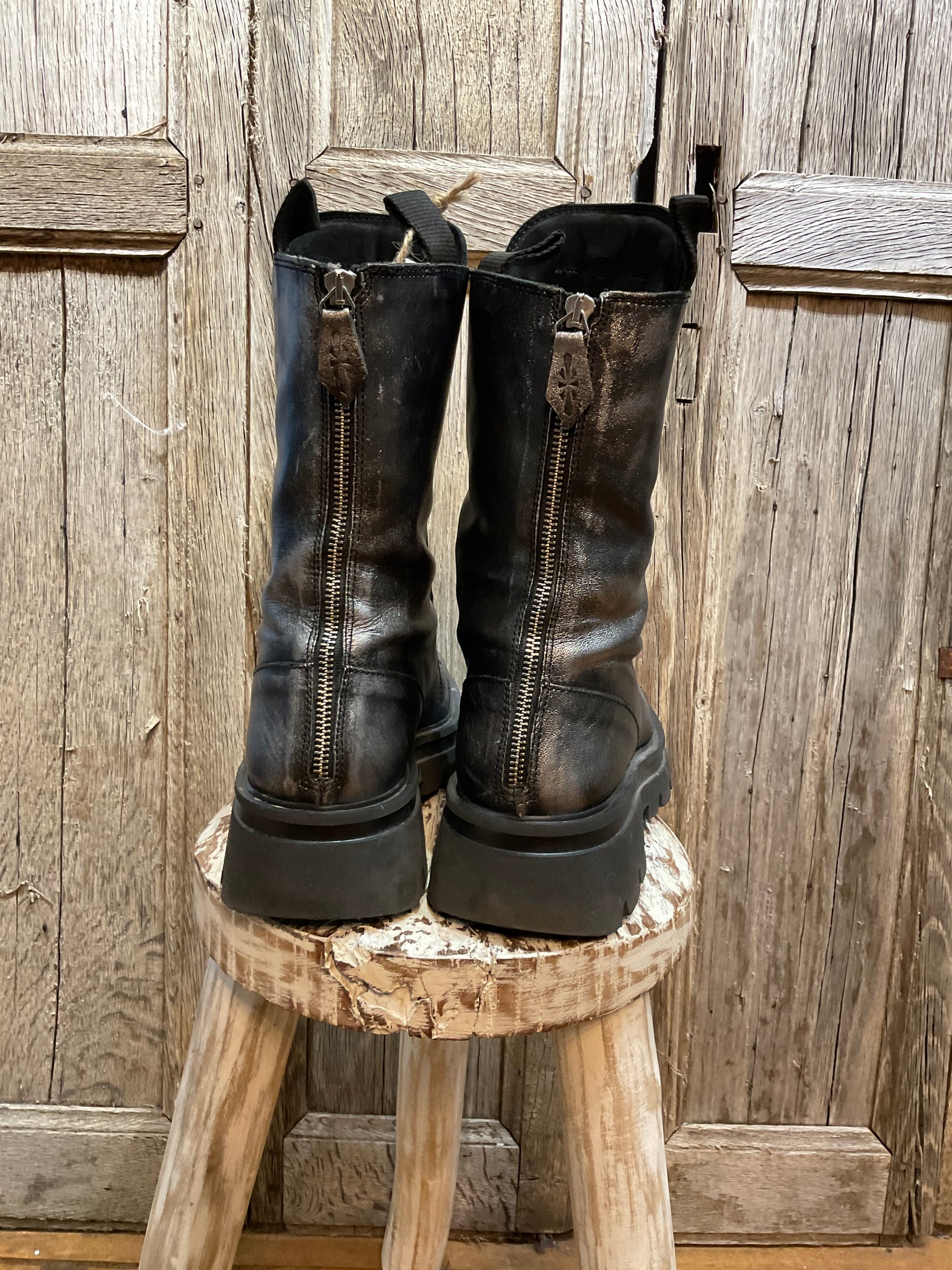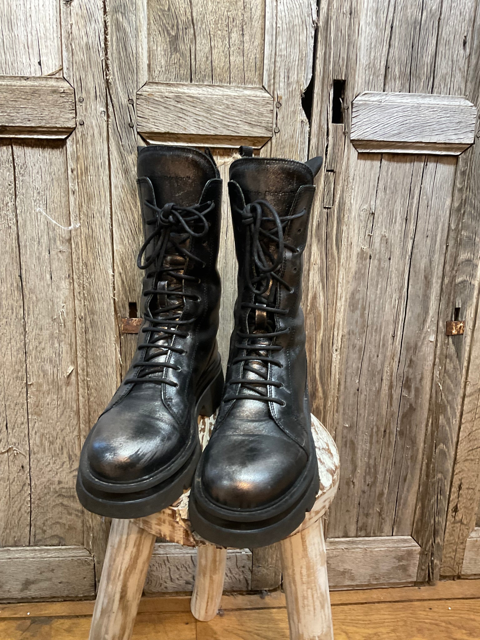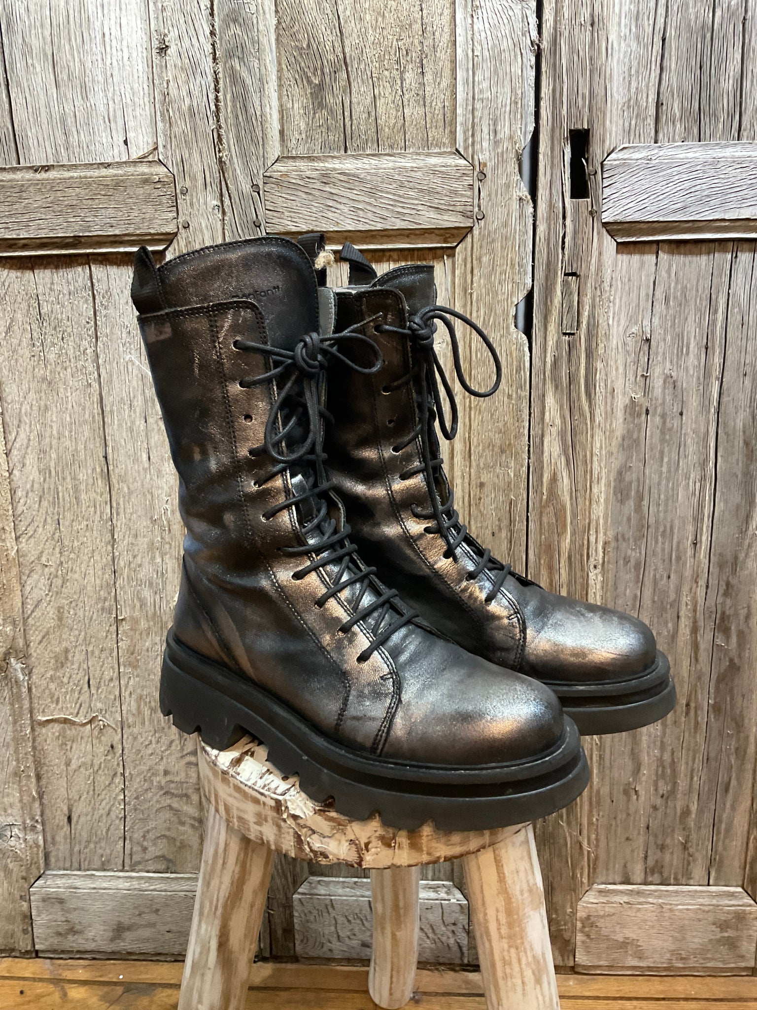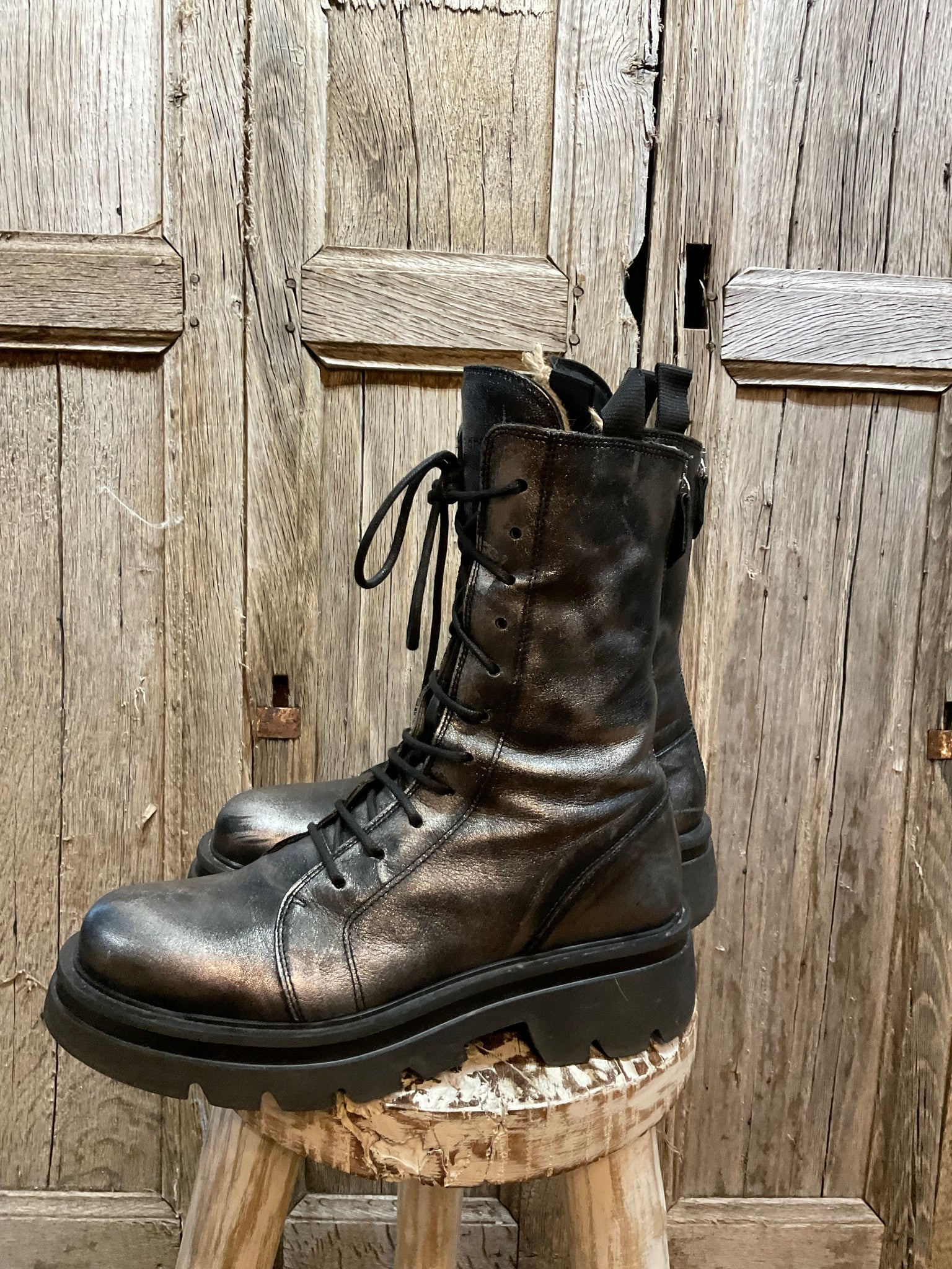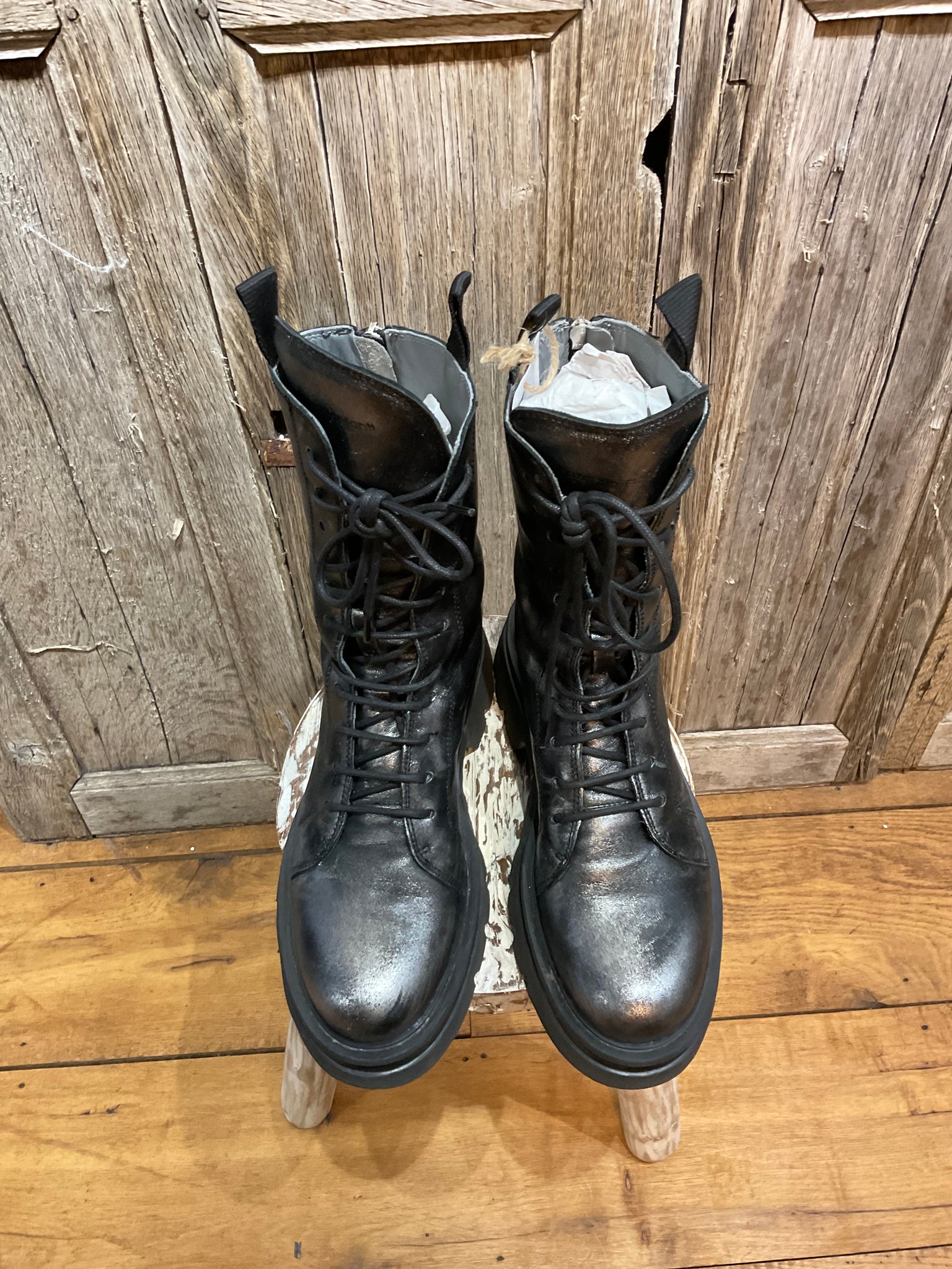 Gorgeous black/silver metallic leather boots with zipper and lace up option. They are lovely and soft with chunky soles