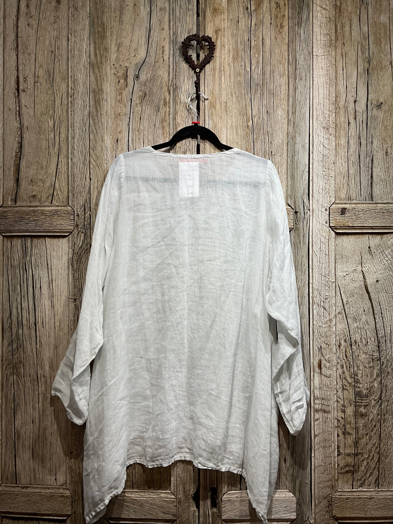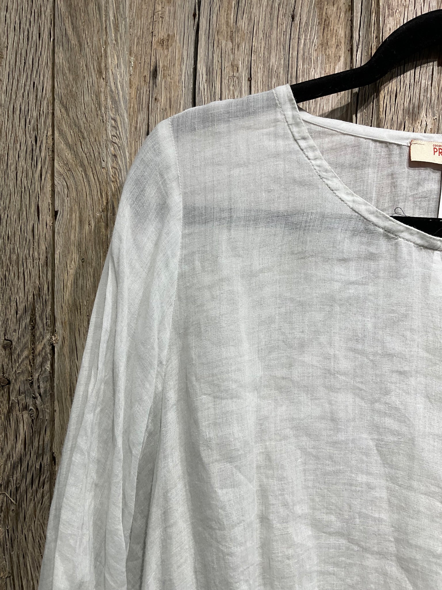 Lovely slightly sheer pale grey tunic with two side pockets.
