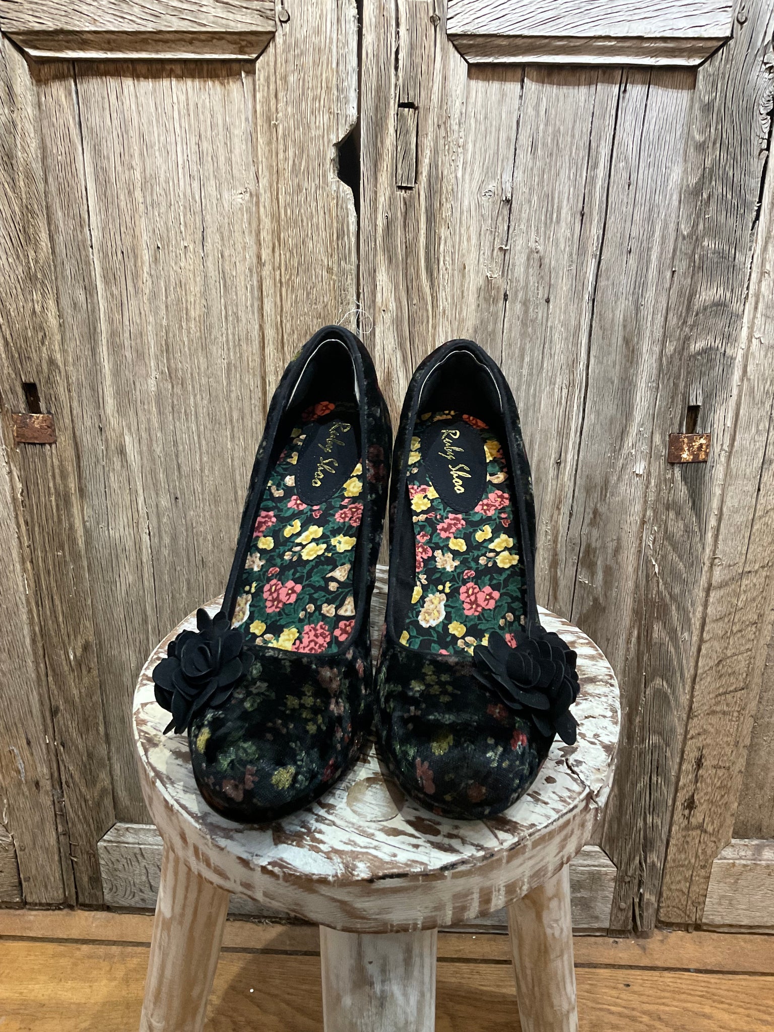 Beautiful velvet floral pattern shoes, perfect for a special occasion