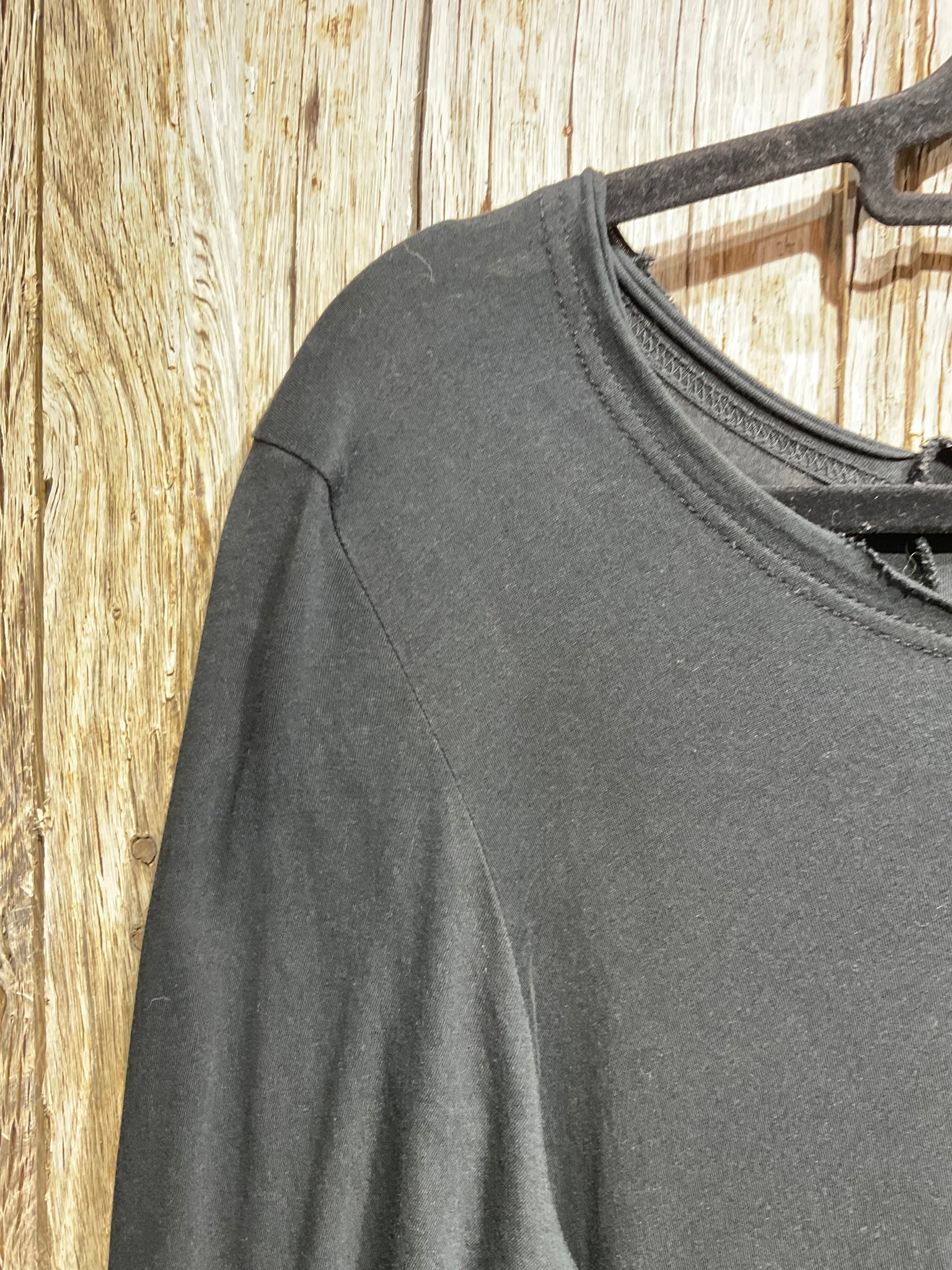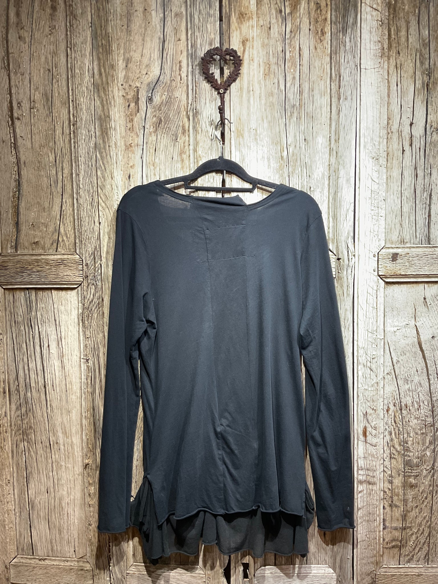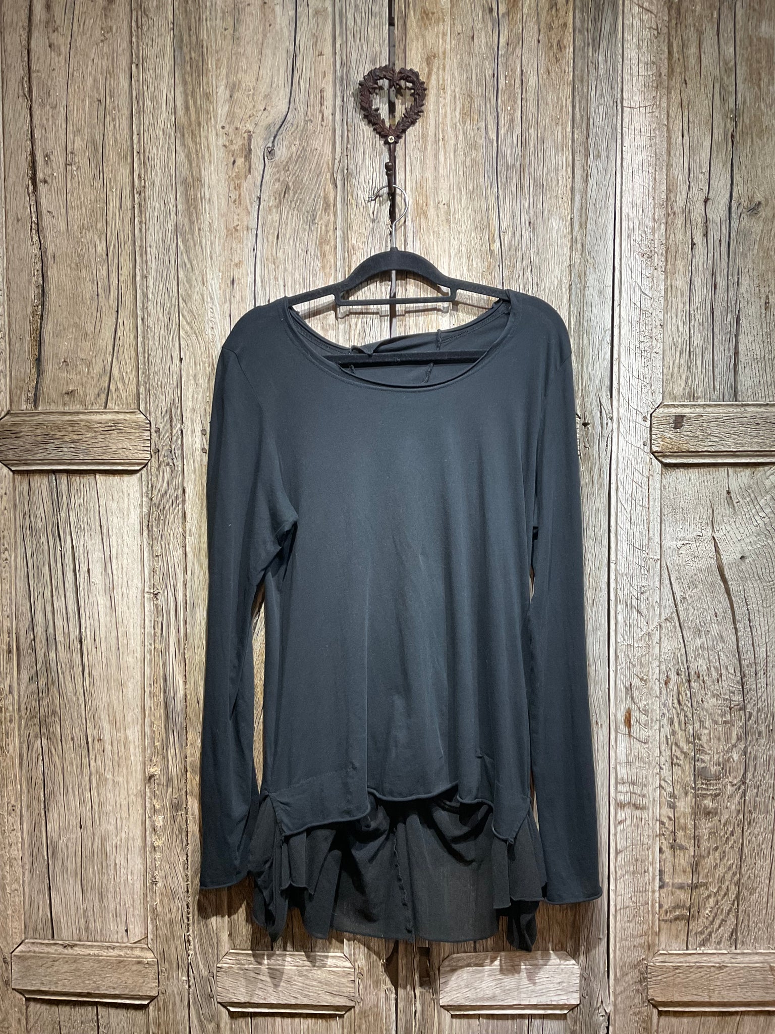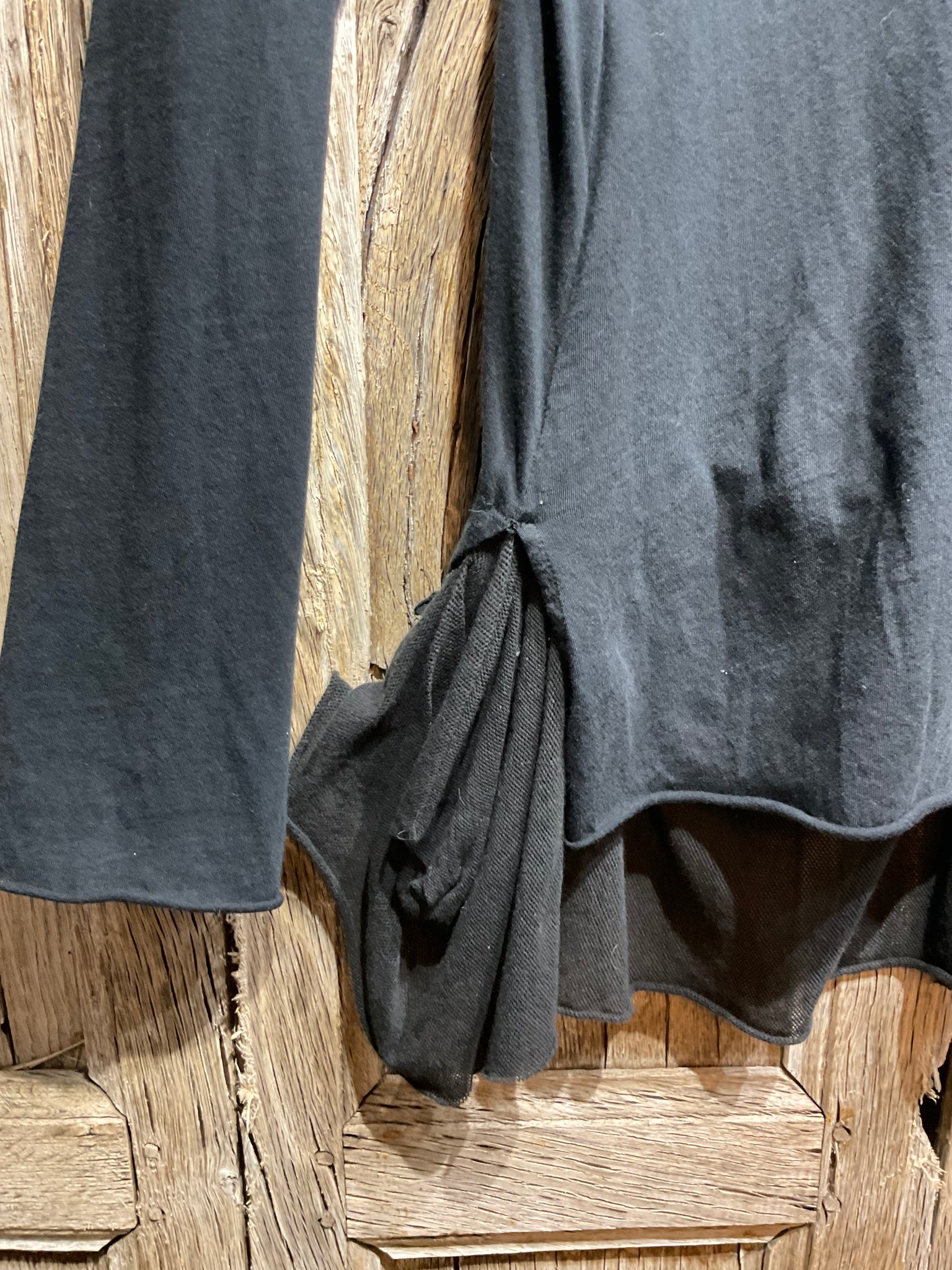 Beautifully soft cotton long sleeved black top with interesting fabric detail around hem